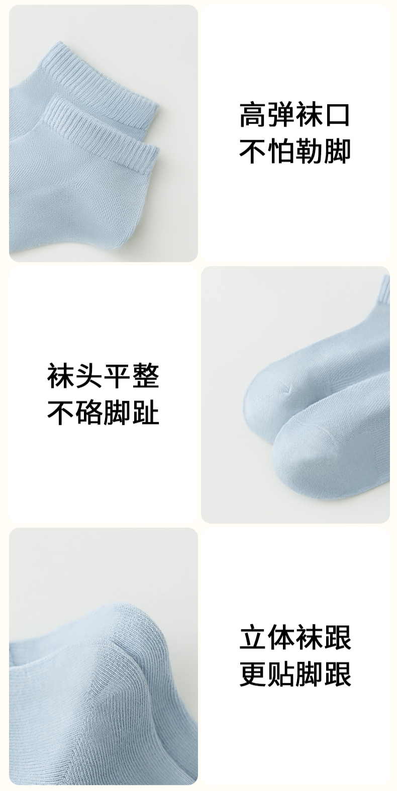 使用高回弹橡筋,每根橡筋都经过10000次弹力测试,跟脚舒适,洗多少次也不用担心袜筒松松垮垮的情况。