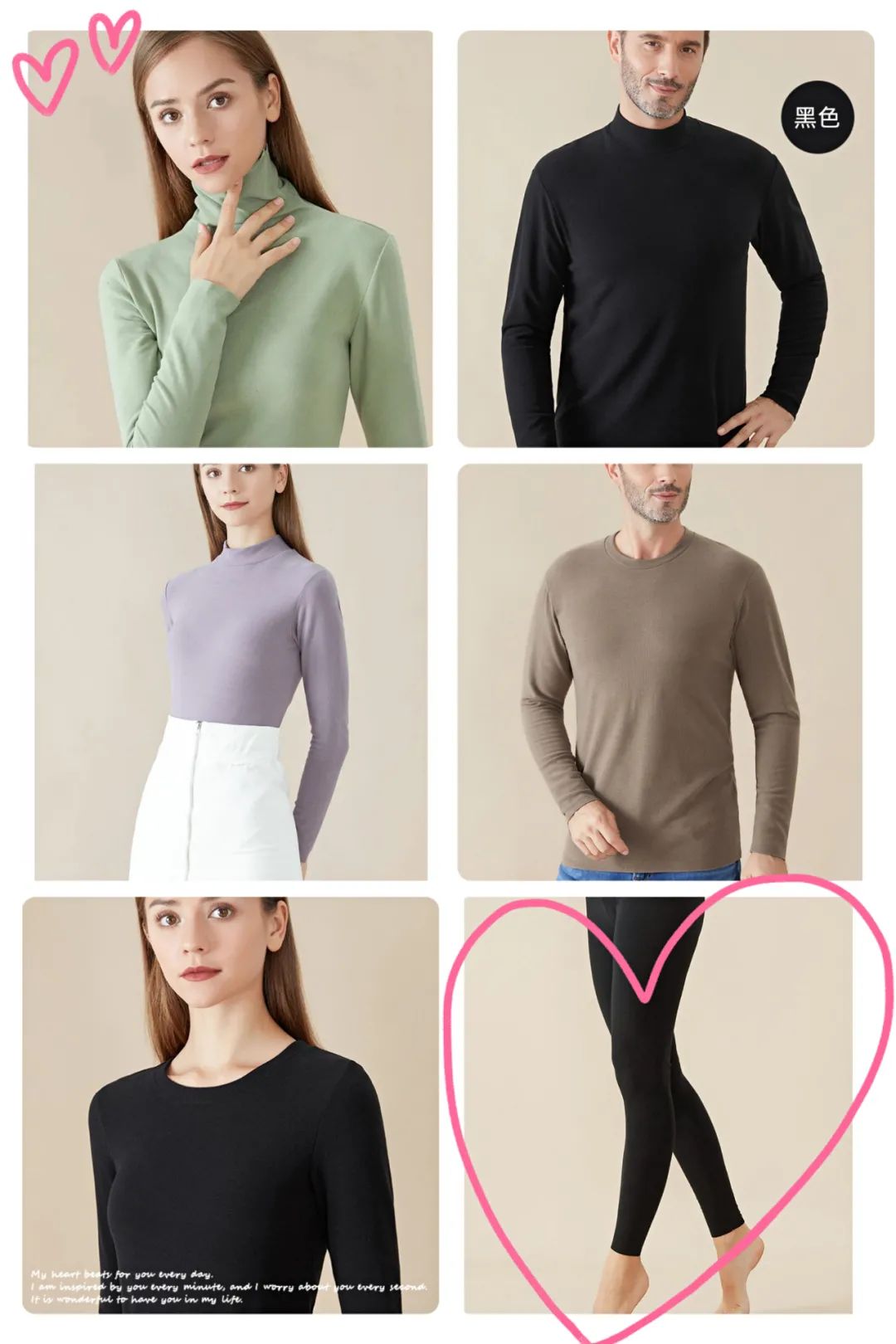 双面德绒男士圆领/半高领打底衫、女士双面德绒高腰护宫裤,还有上次的双面德绒圆领/高领/半高领打底衫。