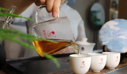将茶汤从公道杯中分入品茗杯中,即可品饮。