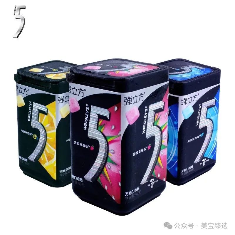 箭牌5口香糖有多种口味,包括薄荷、西瓜、蓝莓、青桔、草莓等,其中抹茶和酸奶蓝莓口味