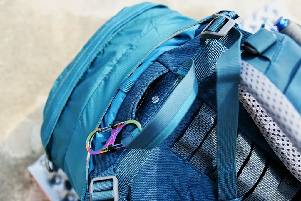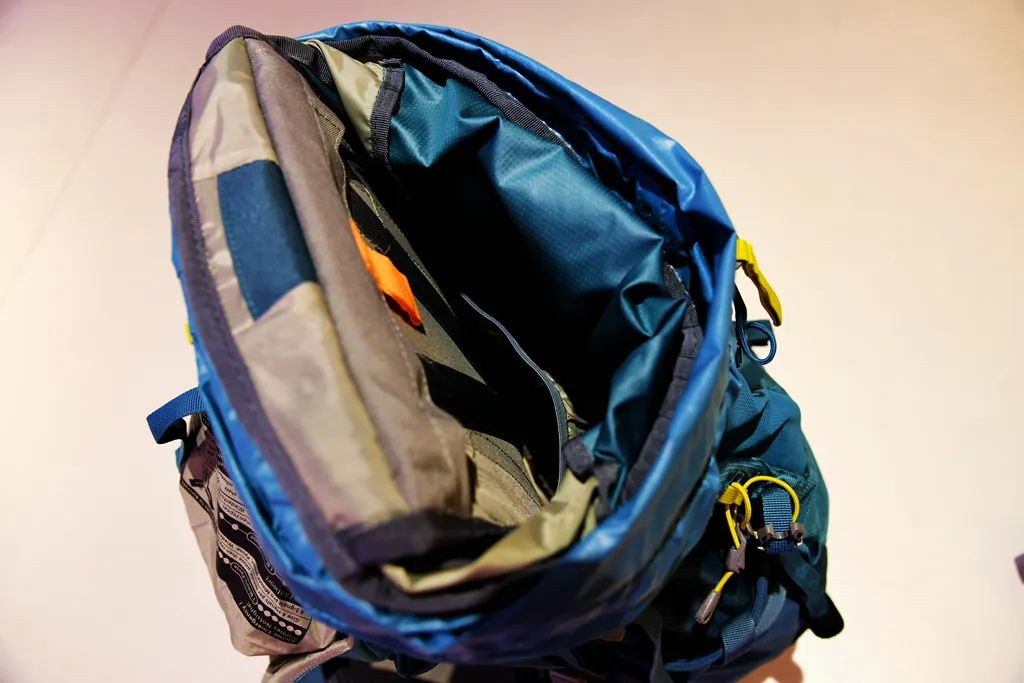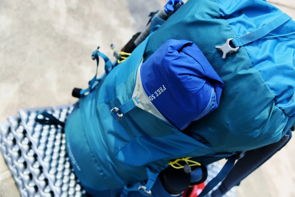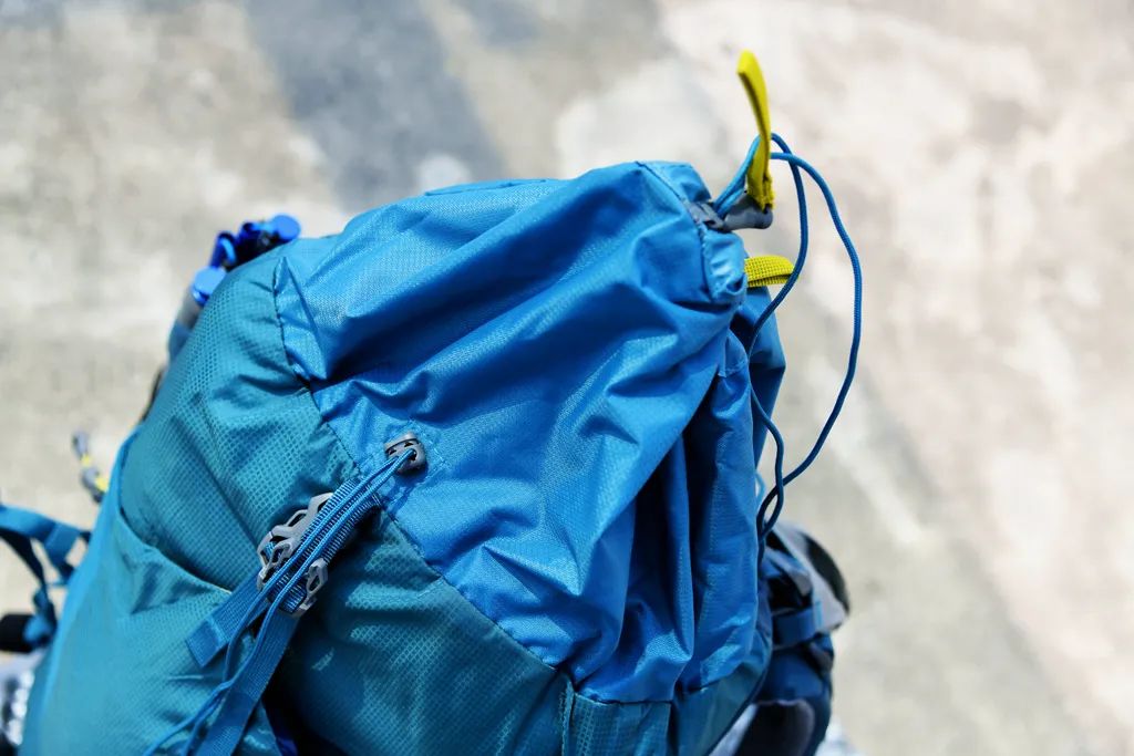 Aircontact Lite蓝精灵顶仓设计内外隔层,顶仓为可拆卸结构,所谓的容量+10,无外乎就是主仓顶部可延展开,延伸的空间与主仓采用紧固带区分,10升容量不使用时候则主要拉紧主仓收缩带就好,顶仓织带拉紧。