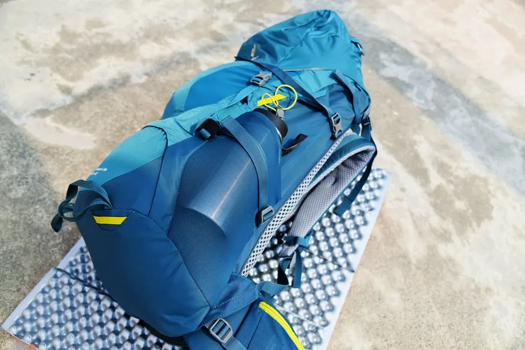 Aircontact Lite蓝精灵(前身称为ACT Lite)背负结构为AIRCONTACT 空塔背负系统,主打轻量化、透气、可调节的背负结构,直白说就是背包紧紧的贴着后背,AIRCONTACT 空塔平面凸起,悬空位置能提供很好的空气流通,而且满载背包重量不会压在双肩上,而是主要传递到腰跨和后背位置。