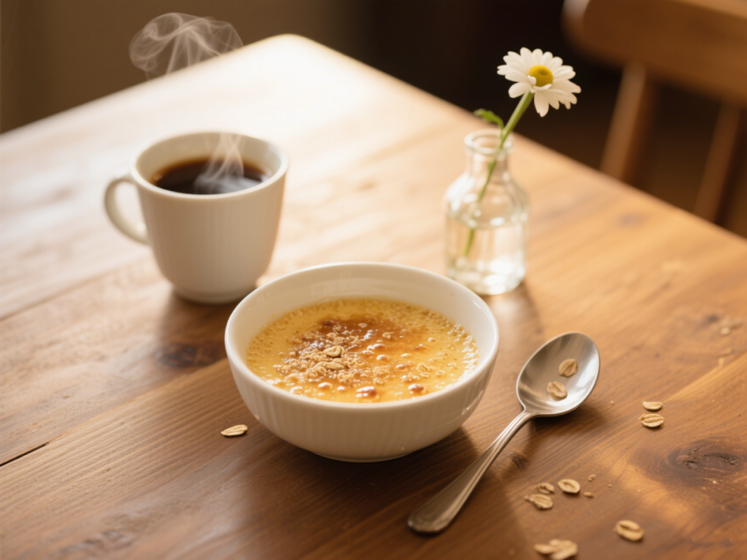 不一会儿,香甜嫩滑,带着浓郁麦香的燕麦麸布丁就新鲜出炉,当作下午茶,美味又健康。