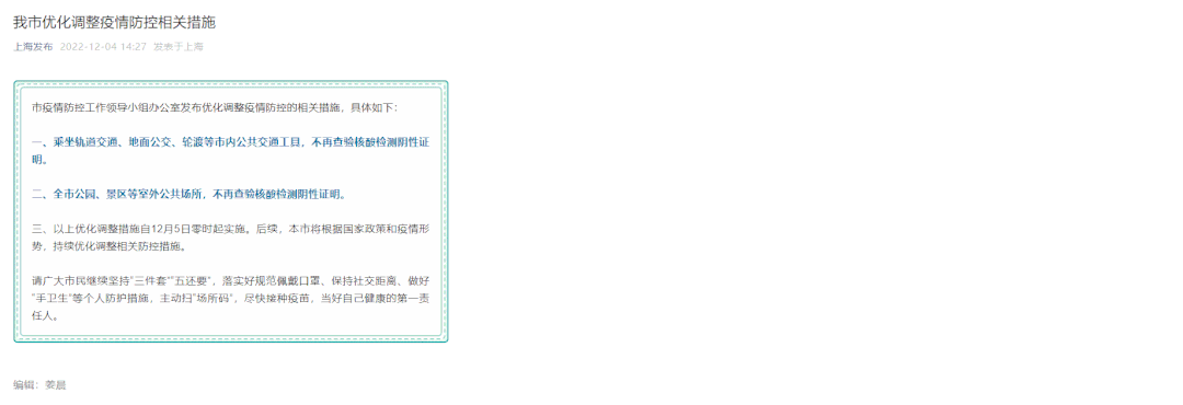 到上海市进一步优化调整相关疫情防控措施
