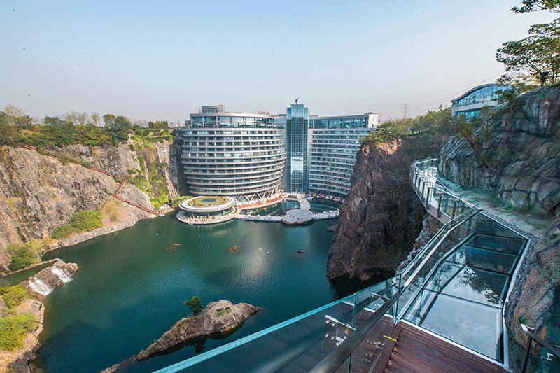 在崖壁边建造的玻璃栈道