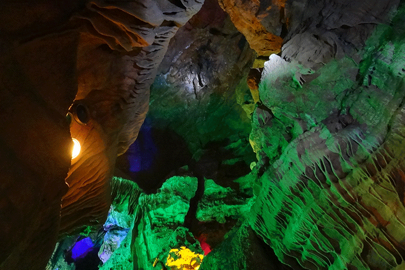 洞天福地、海内奇观。中国国画大师徐悲鸿先生曾赞誉:稀奇古怪,说也不信。真正绝妙,到者方知。其特色是“洞中有洞”,石乳、石柱、石幔、石花琳琅满目。洞内凉爽无比,适合避暑。