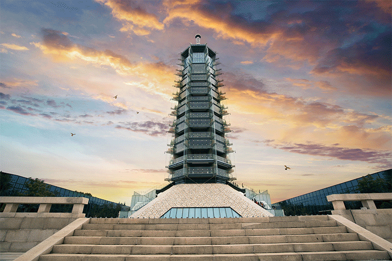 华东地区及常州市地标性建筑。圆盘式360°坐式观景台旋转上升,登上塔顶,便可一览环球恐龙城的全貌。