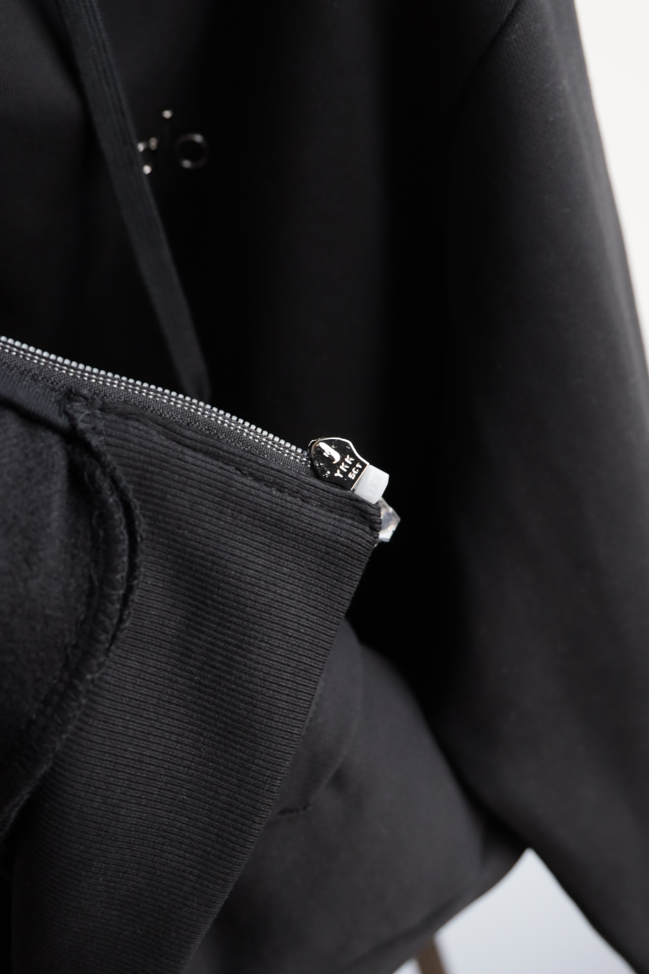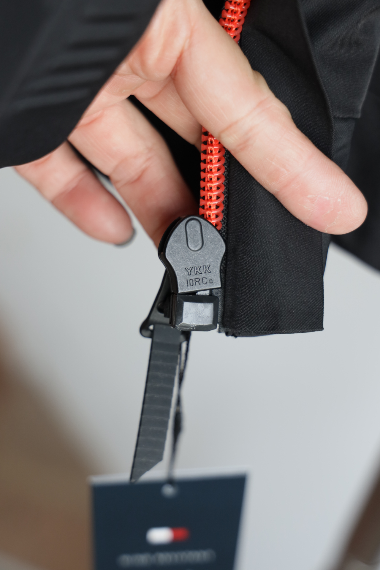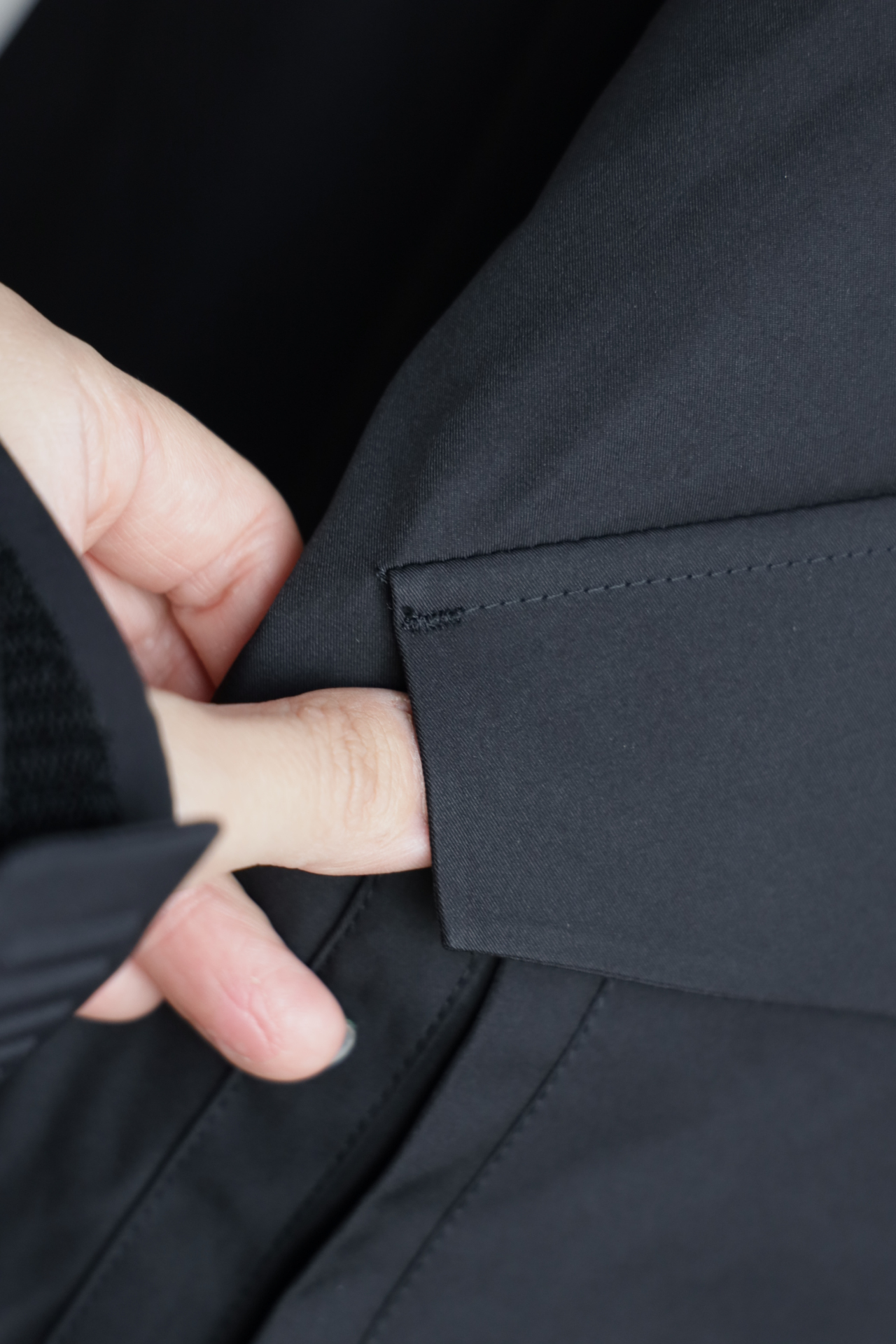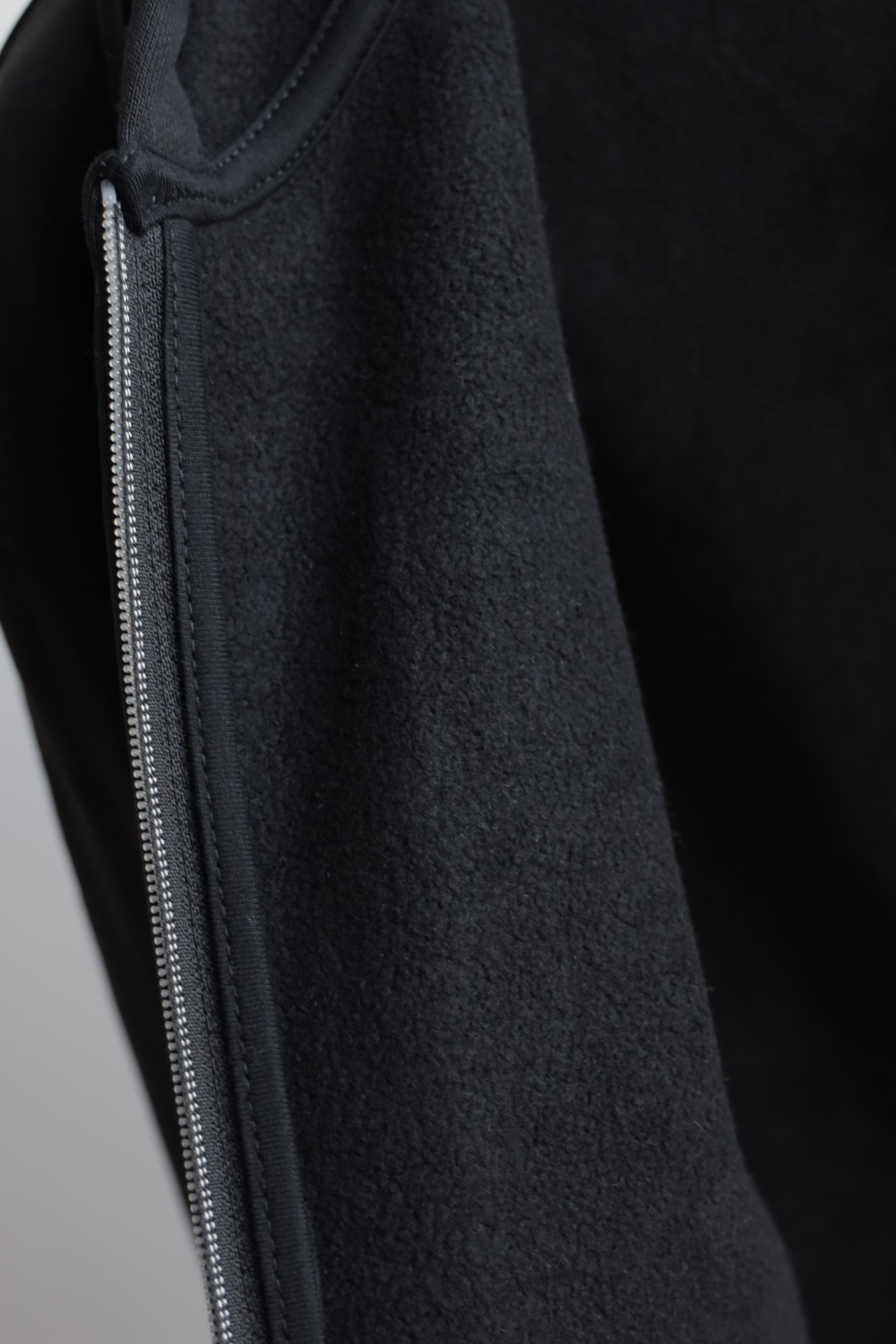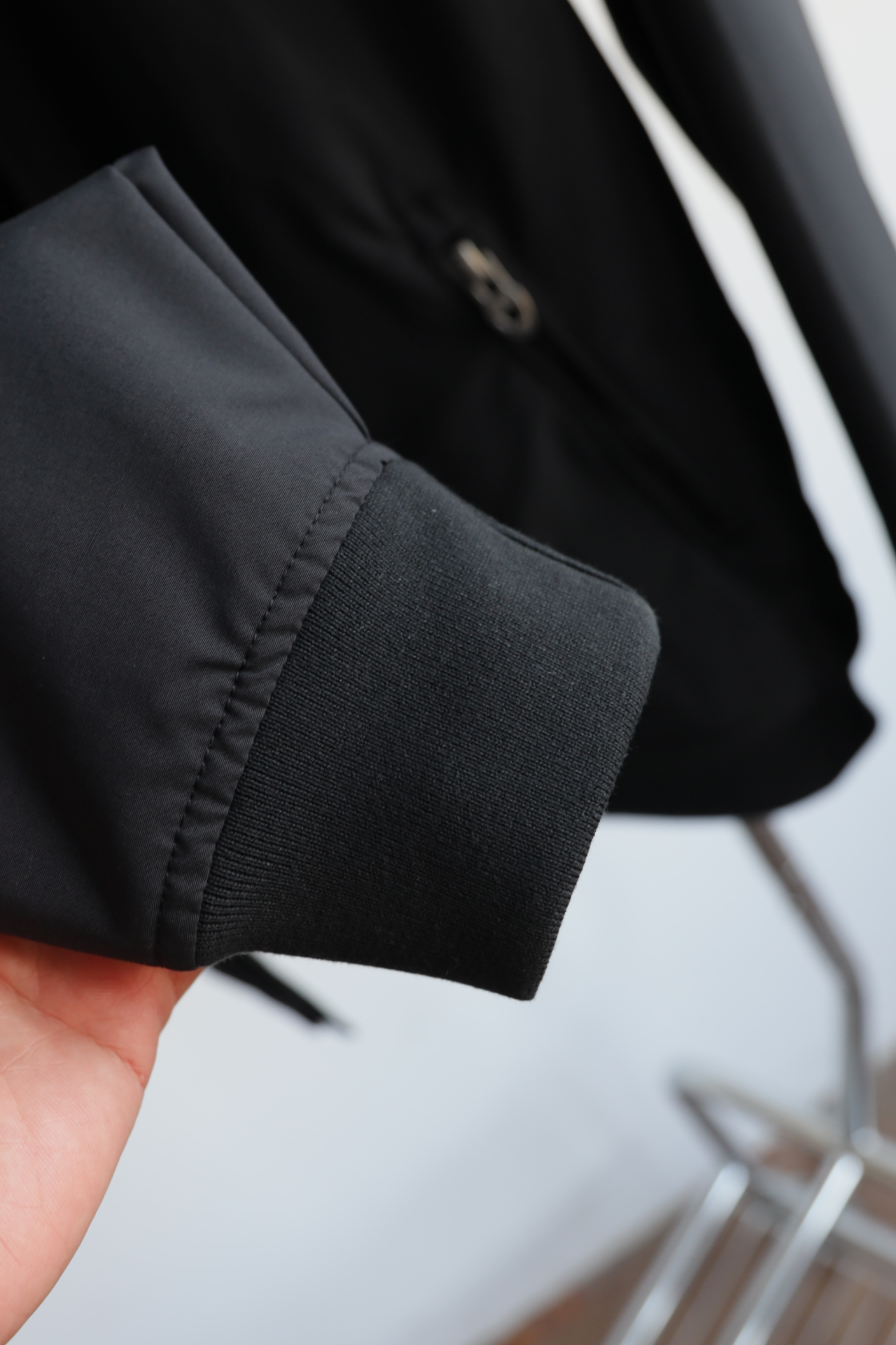 袖口下摆宽幅弹力螺纹,领口内里防风保暖复合绒,细节真的多,包括这个折叠连帽侧面标志性的硅胶条和拉链吊坠相呼应