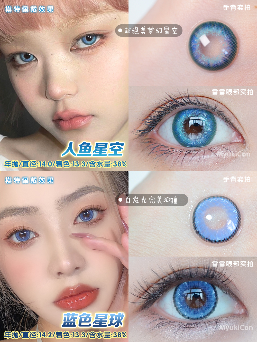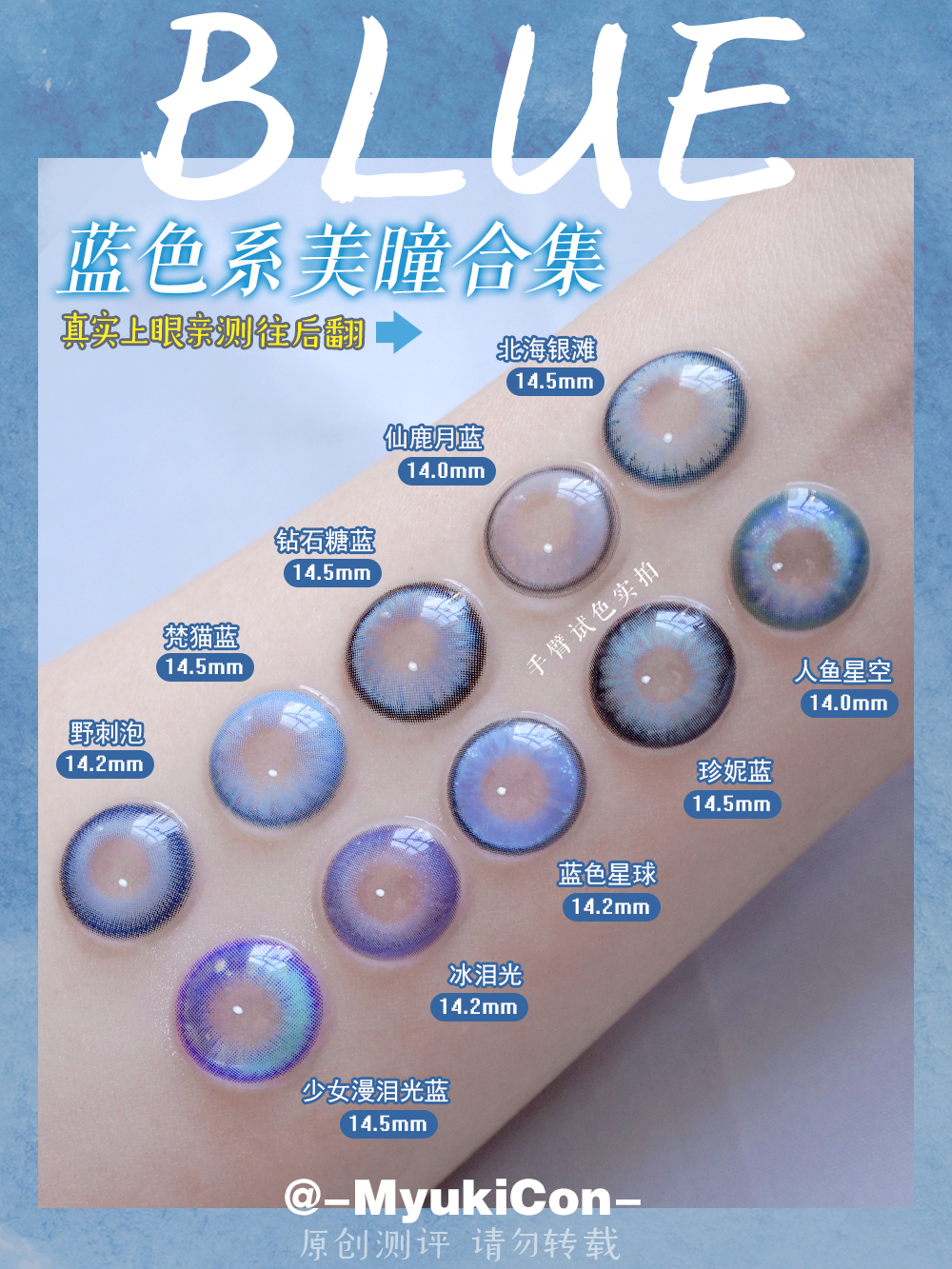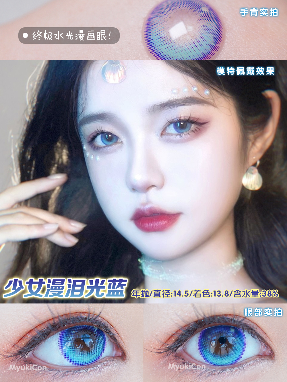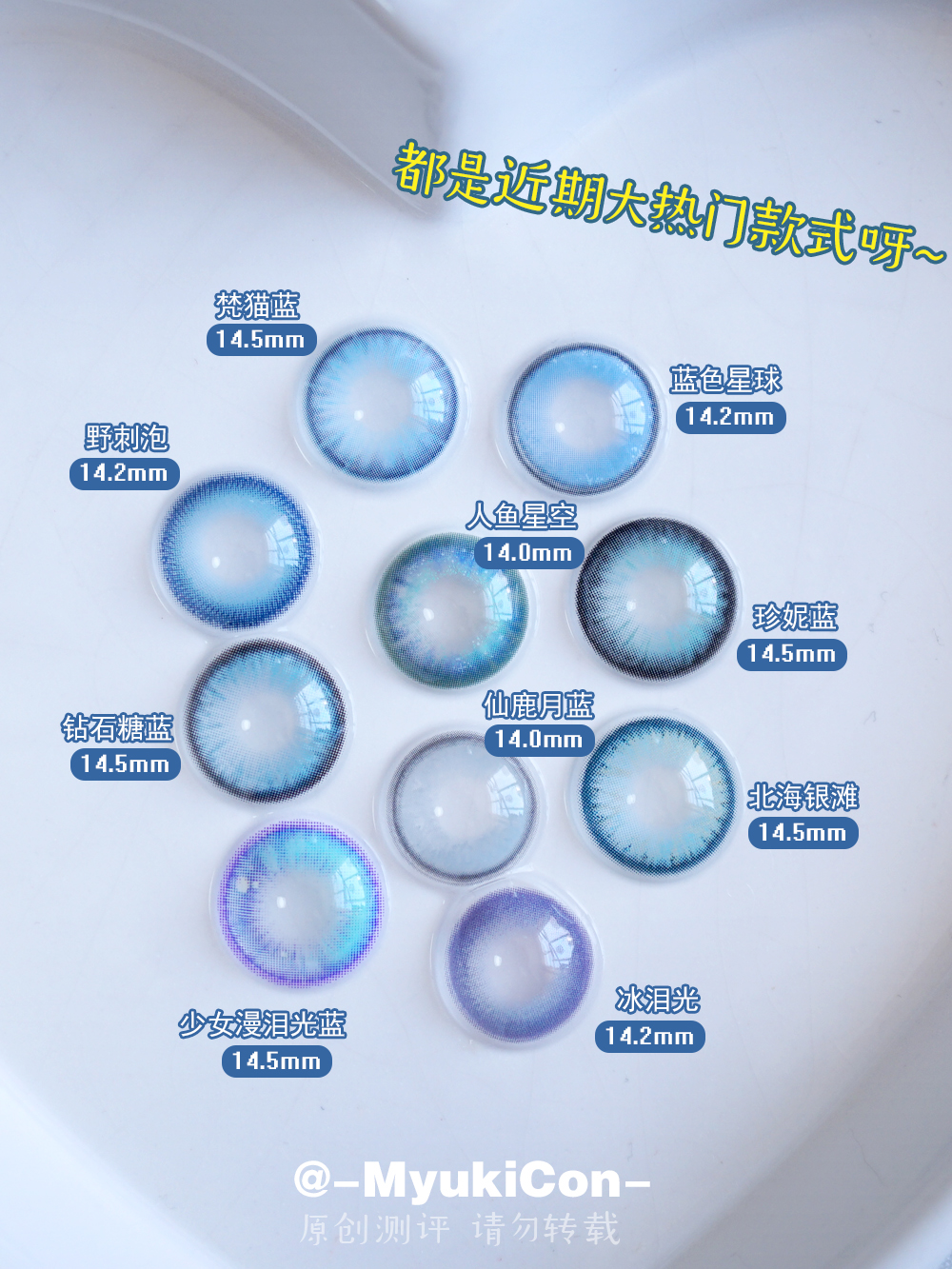 少女漫泪光蓝(直径14.5mm)这款拍照用它真的是YYDS,大直径直接漫画感拉满了,吸晴利器!