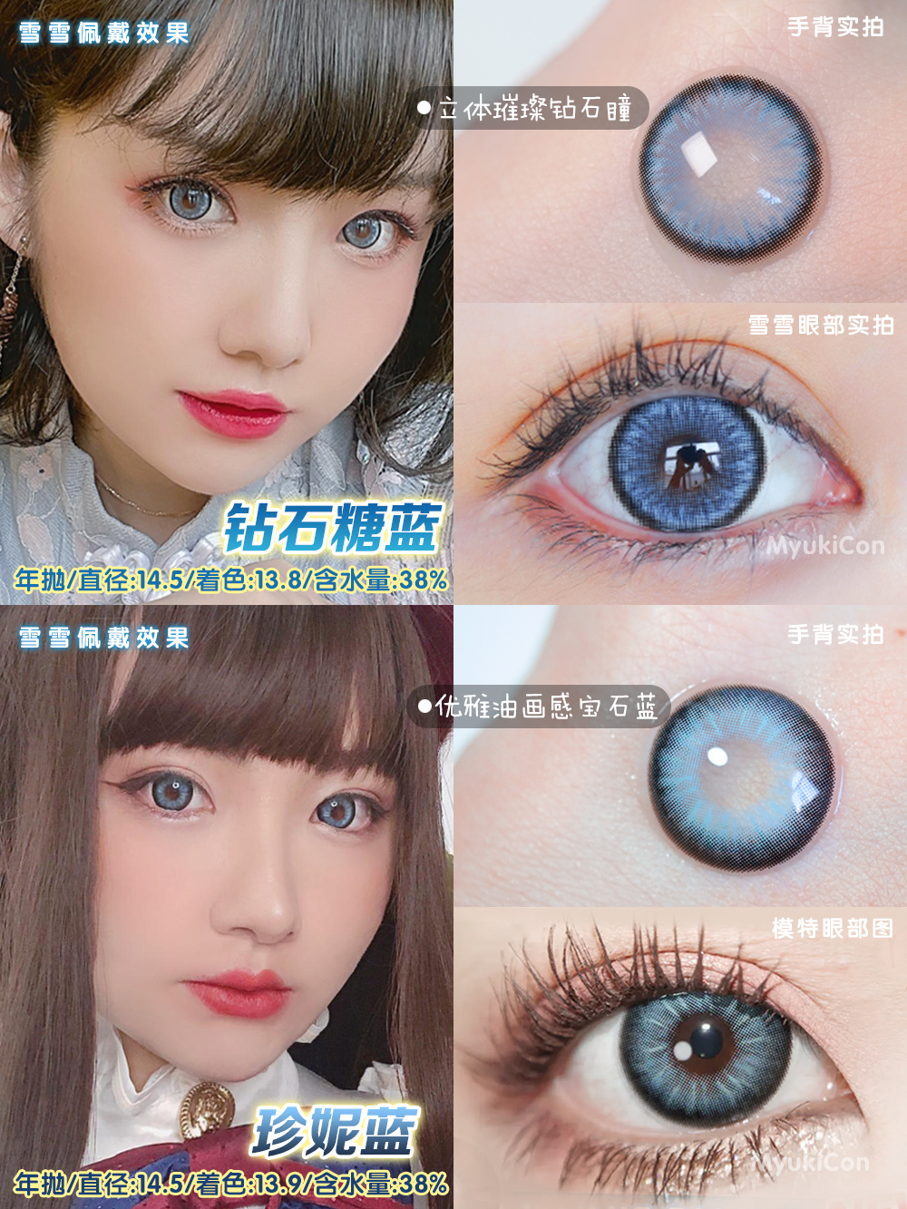 钻石糖蓝(直径14.5mm)大直径爱好者雪雪囤了全套颜色,真的很爱用了!贵妇级别的舒适度,高级钻石纹理能增加眼睛立体度哦~