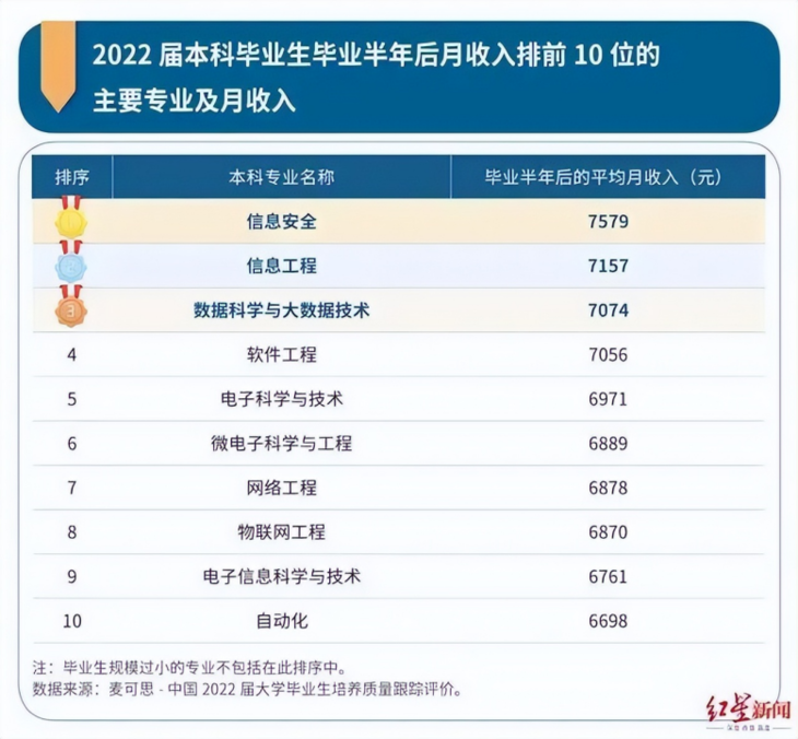 而且由于政府对高新技术企业的支持,科创类专业的就业前景极佳,牢牢占据本科毕业专业收入前十的榜单。