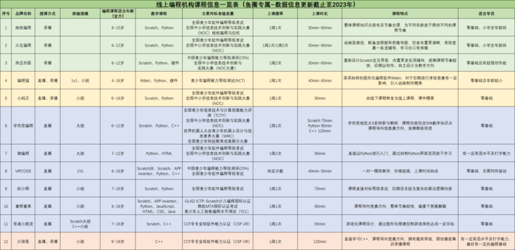 我们也对线上的编程课进行过整合对比,最终的结果是火花编程较优秀:
