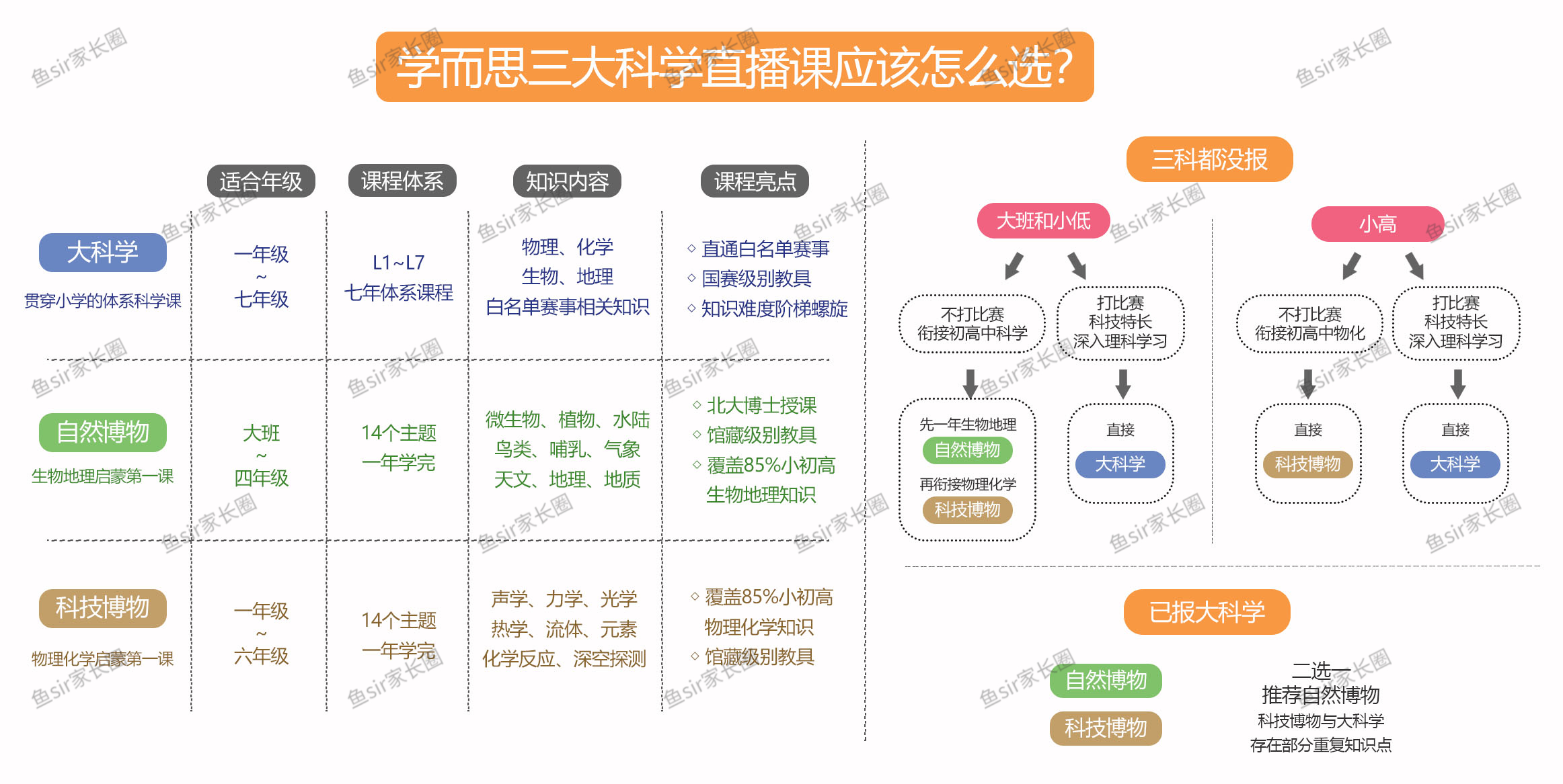 简单来说,又想系统学课,又要打比赛的,可以选大科学;博物系列适合0基础孩子科学启蒙,知识点更广而且紧扣校内,学习难度相对较低。