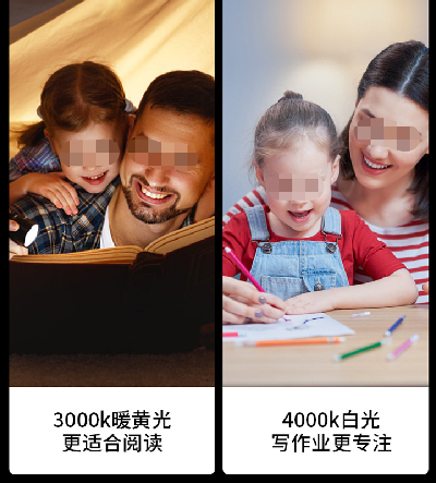 ●色温:能调制4000k最佳,5000k容易使人疲劳,休闲阅读可用低色温光源。