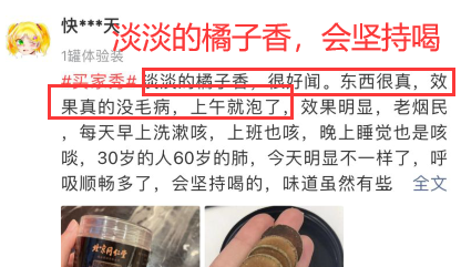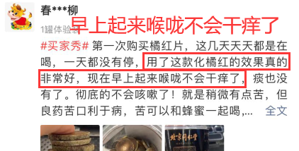 有暖粉买回家说:她家那口子咳嗽2周多,给他买了化橘红泡水,喝两次就感觉不一样☟