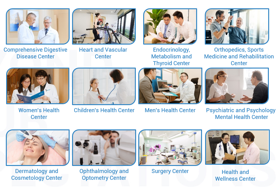 曜影医疗拥有超过30个临床科室,以及12大学科中心,包括:消化疾病中心,心脏诊疗中心,内分泌代谢及甲状腺中心,骨科、运动医学和康复医学中心,女性健康中心,儿童健康中心,皮肤整形中心,眼科及眼视光学中心,男性健康中心,精神与心理健康中心,手术中心,健康管理中心。这些中心均是建立在以患者为中心的基础上,打造的一站式健康服务平台。