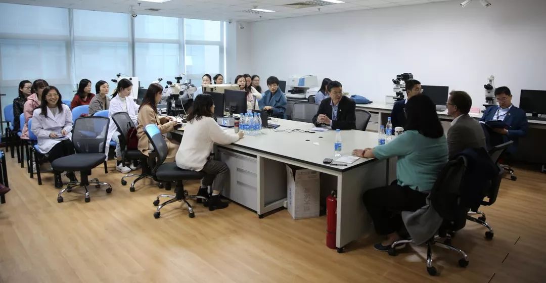 签约仪式结束后,瑞士古柏林宝石鉴定所(GGL)一行参观了NGTC北京实验室,并与NGTC中心科研检测人员就彩色宝石溯源和追踪新技术等进行交流。