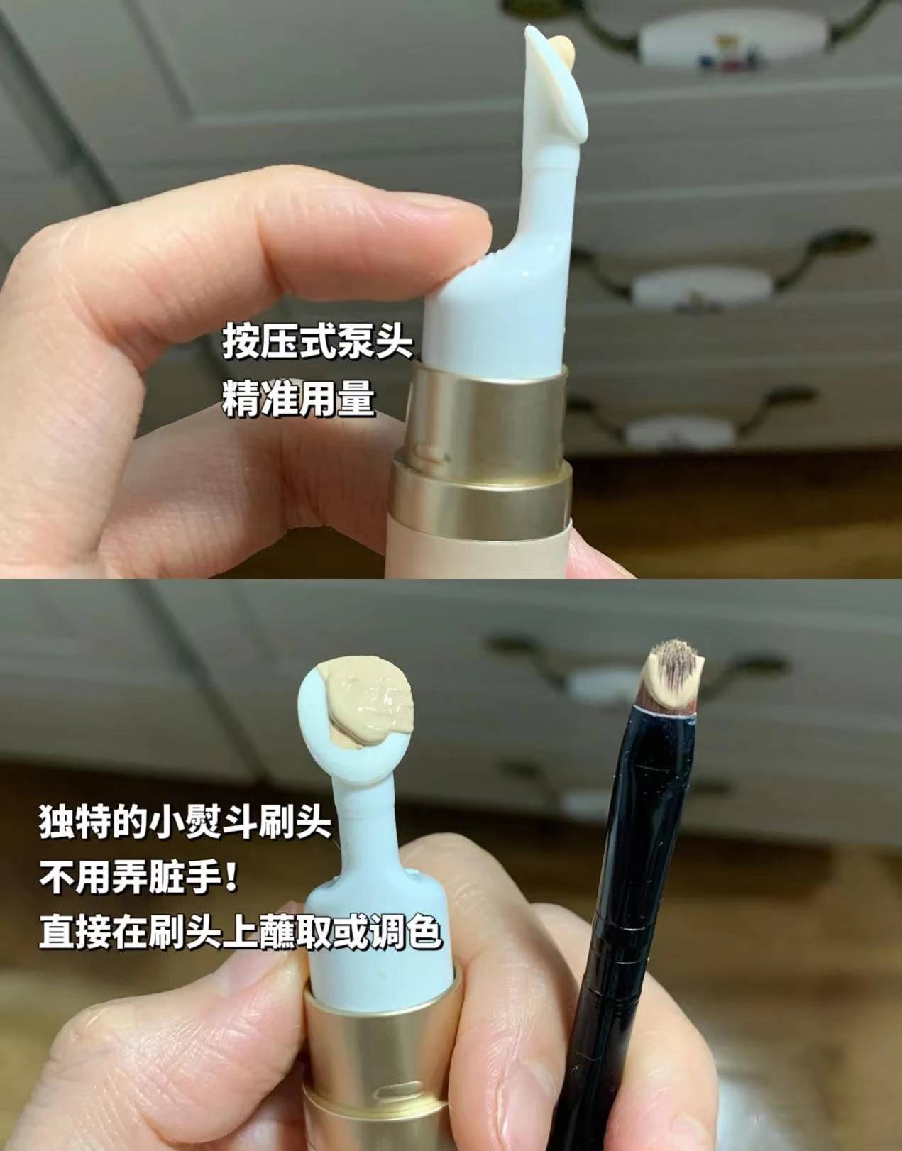 首先都是顺滑好推开的奶油质地🧀,【刷头款】更适合小范围精准遮瑕👀