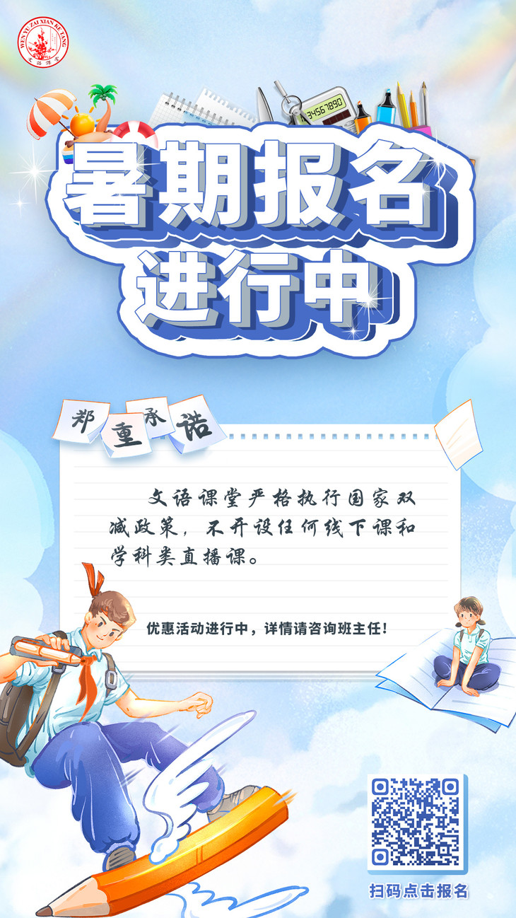 文语课堂暑期课程继续严格执行国家“双减”相关政策,不开设任何年级、任何形式的线下教学,请社会各界监督!