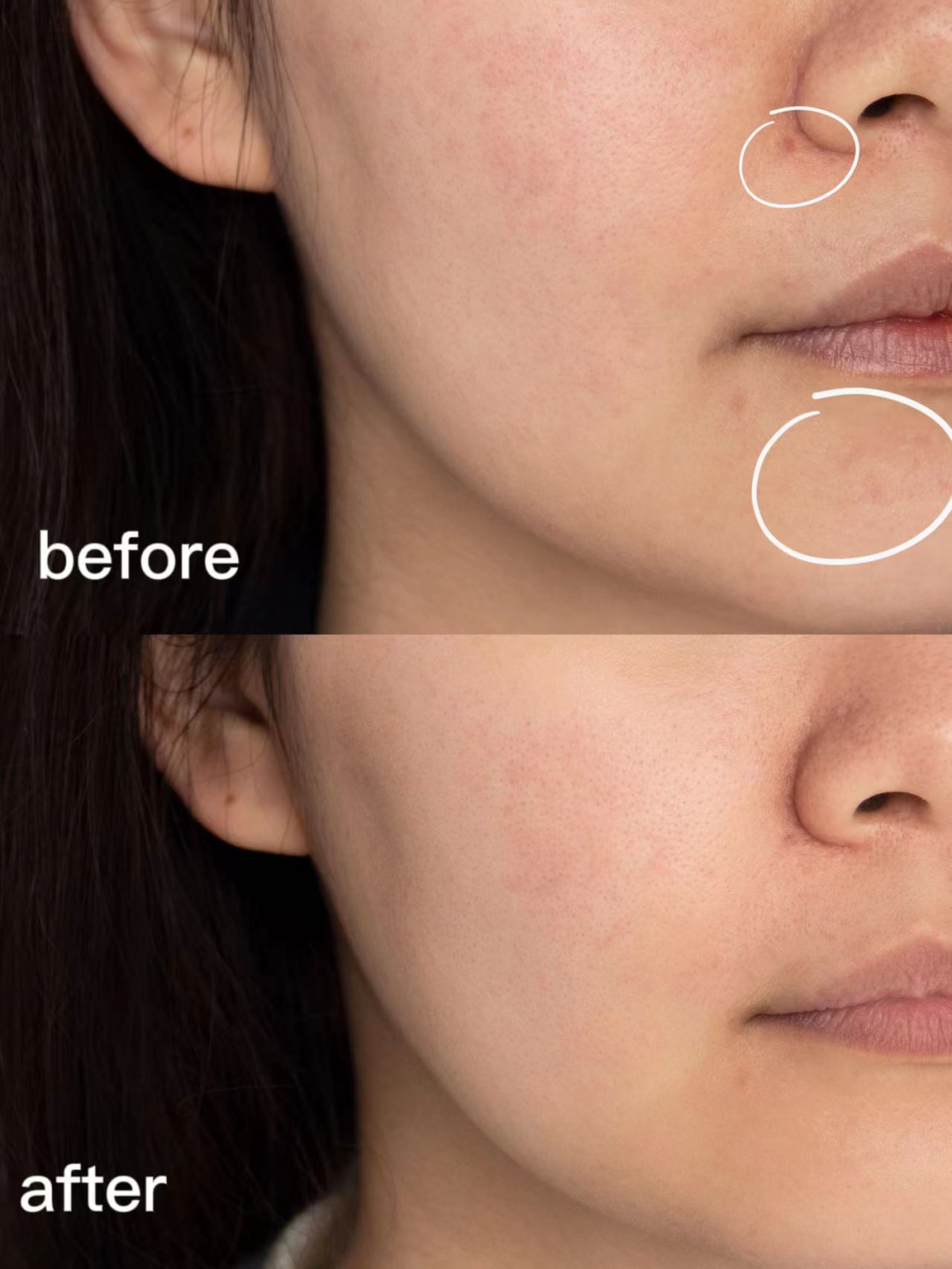 先来汇报在我脸上的成绩,脸颊上这几撮烦人的印子,终于肉眼可见地消退了些,真是进一步有进一步的欢喜啊!