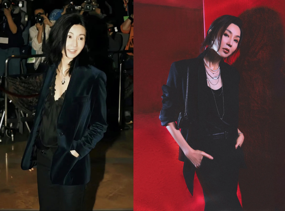 前不久在MO&Co上海秀场亮相,西装内搭蕾丝吊带,还是熟悉的曼玉配方。