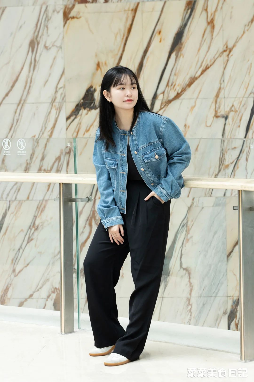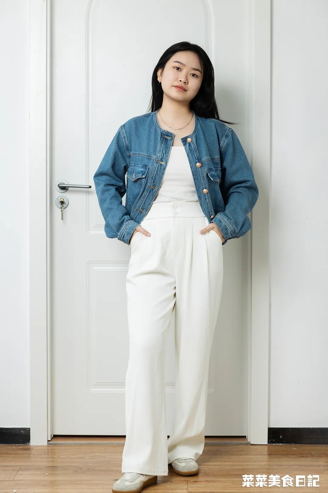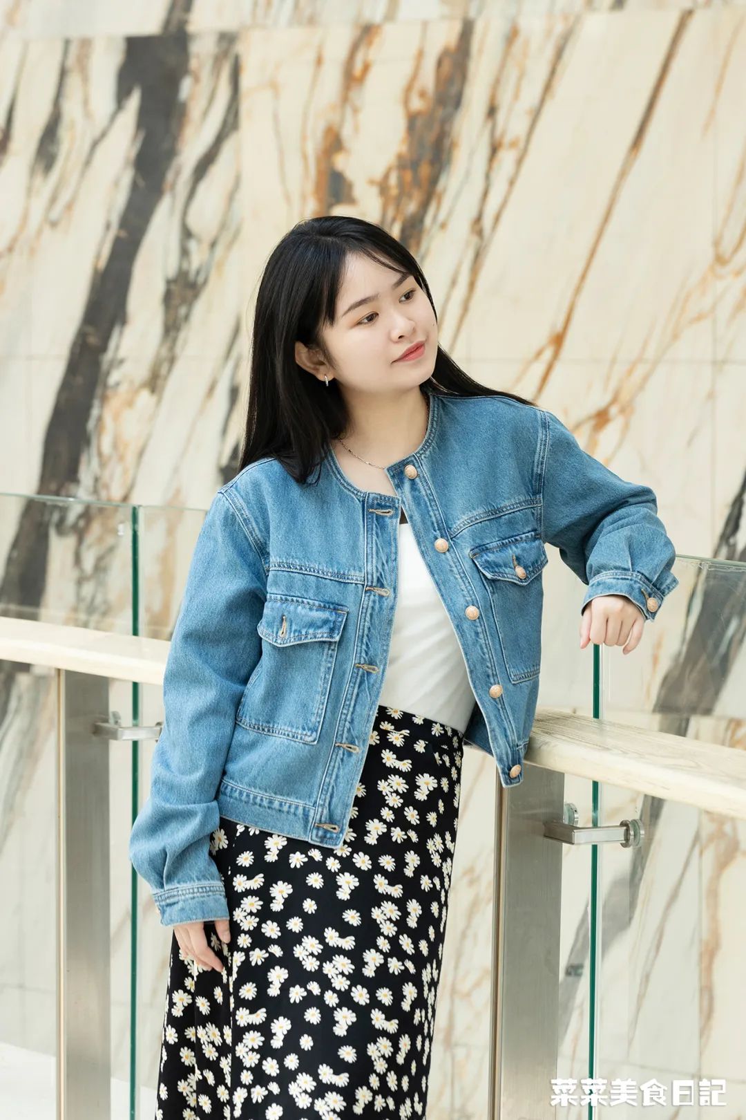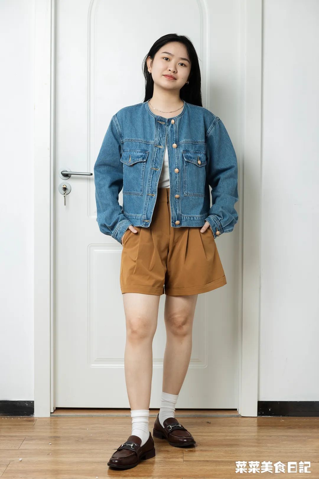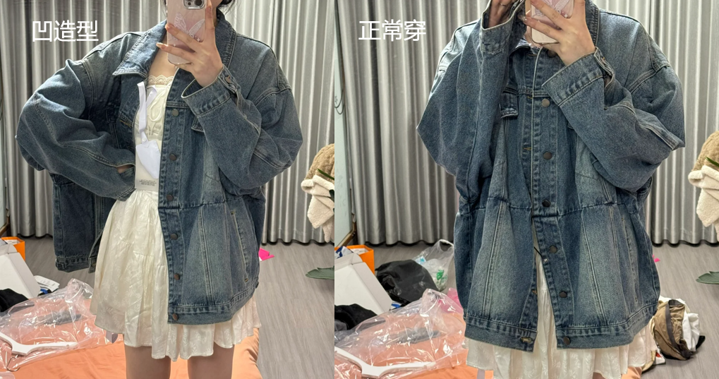 这些小问题,都被这件牛仔外套很好藏住了↓