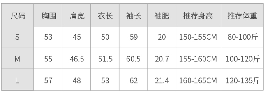 尺码表先放这,方便你们选码(主要看胸围和肩宽的数据)。