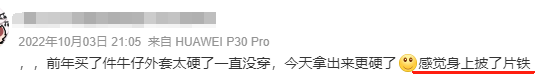传统牛仔布大多是比较硬挺的,虽说是它的特点,但穿上身真的好难受。