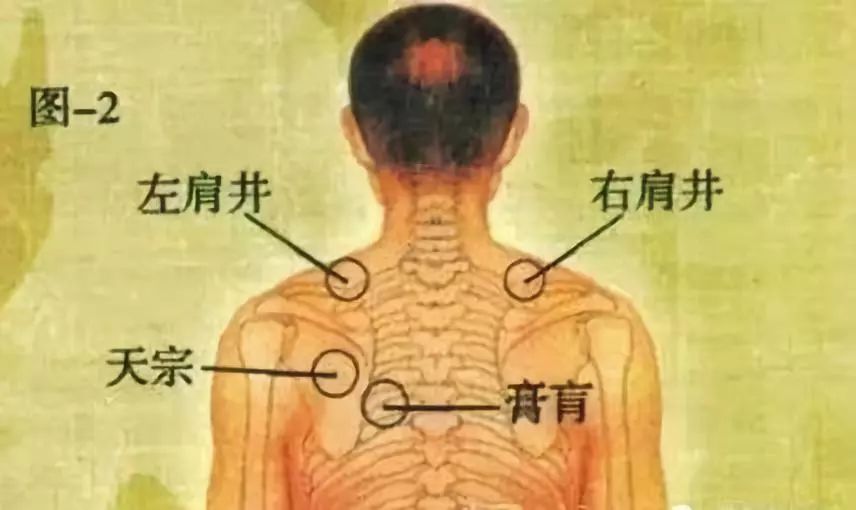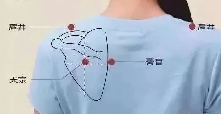 《针灸甲乙经》:“肩重,肘臂痛不可举,天宗主之”,有颈肩疾患的人,按压天宗会有强烈的痛感,并向四周扩散。