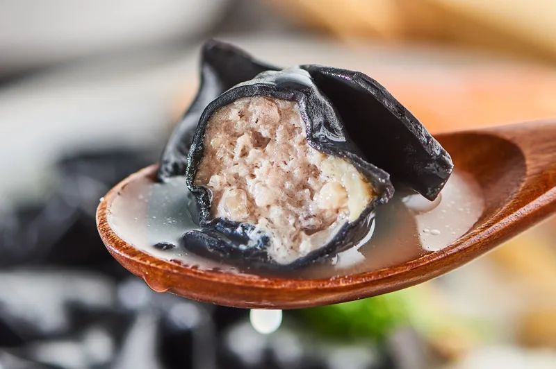墨鱼汁的蛋白质含量还是牛奶的3倍,各种果蔬粉还提供丰富的维生素,不仅看起来新鲜感十足,还给小馄饨的营养值加分。