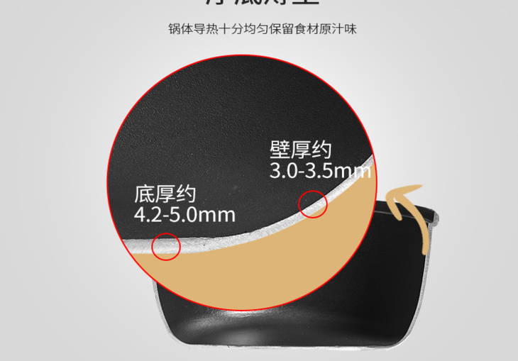 因为锅身的铸铁部分有着些小小的,会呼吸的小孔,均匀的分布在里层,这些小孔是铸铁时所产生的,热量透过这些小孔传热的同时,也会余留在这些看不见的孔里,在传热的同时也在聚热,热量汇聚,即使家庭烹饪也能做出饭店里的大火炉灶的效果。