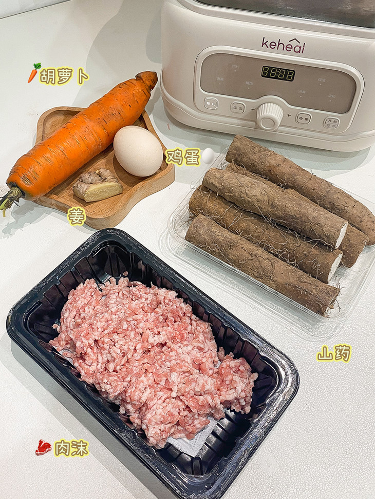 1、山药、胡萝卜、姜去皮洗净切碎粒