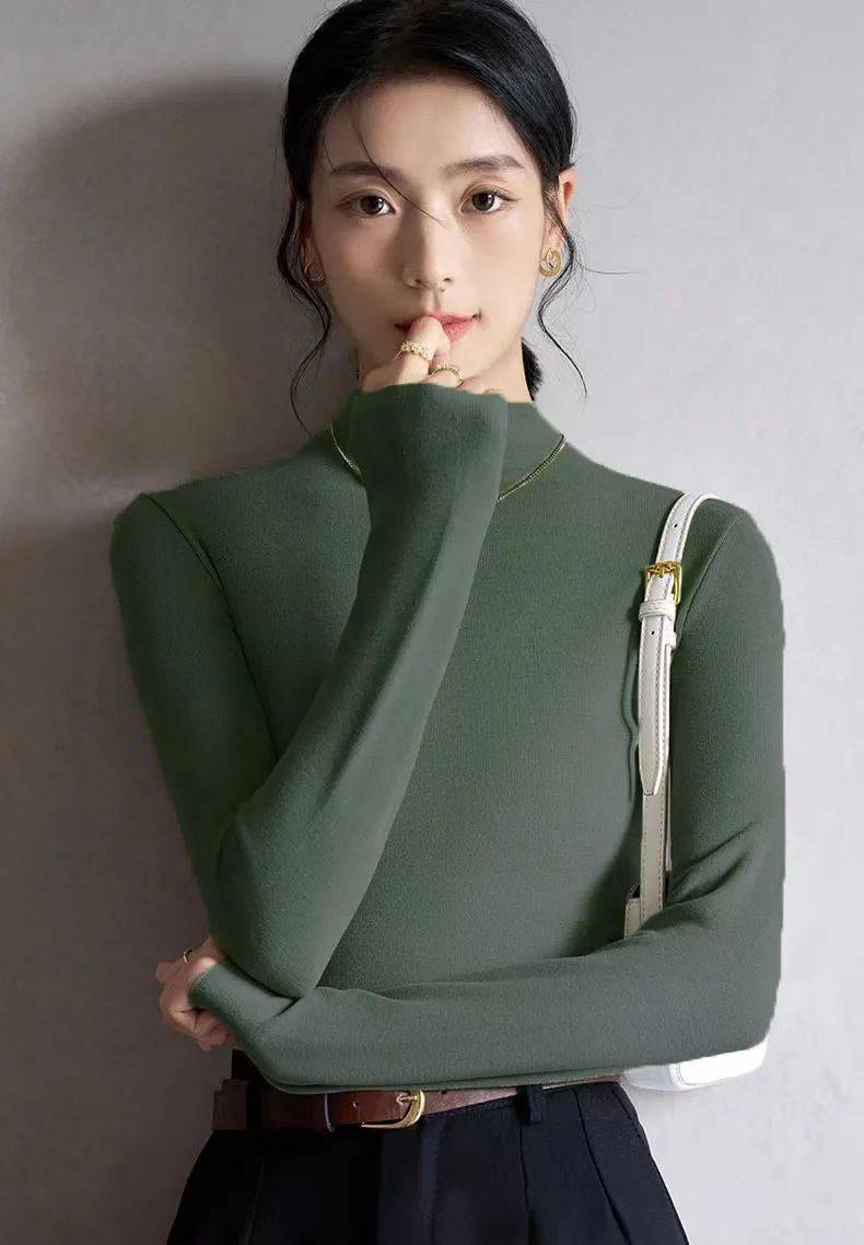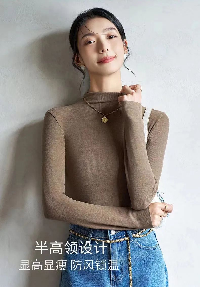 不信你看,世面上的打底衫看似差不多,但是上身有的松松垮垮不成型,有的太修身显肚子又显胯宽。设计上适应亚洲女性身材,不过分紧身,微宽松。即使单穿一件,也很大方得体,舒服显瘦。体现腰线同时,还巧妙的遮挡肚子的赘肉,能勾勒出好看的曲线!而且它是螺纹设计哦,视觉上更有拉长身材比例的效果。领子也是做了近年很火的半高领款式,比高领低一些、比普通领高一些,对粗脖子星人也很友好。领口还做了加宽处理,即使是大粗脖,穿上也有不少余量,不会有窒息的勒脖感~像这种打底衫,无论是瘦到爆的小仙女,还是微胖界宝妈都能驾驭的衣服才称得上好衣服。而且无需你有太多的搭配功底,只要你有一件不重色的外套,就能穿出时髦感~作为内搭,打底衫的穿搭频率很高,所以不仅版型要好,还得耐造啊。市面上同价位的打底衫,穿1-2次就会起球、变形,下水一洗还会缩水,我自己也踩过不少雷。不仅弹性好,回弹性也很优秀,无论怎么暴力拉扯,它都能很快恢复。更赞的是,它真的不易起球~