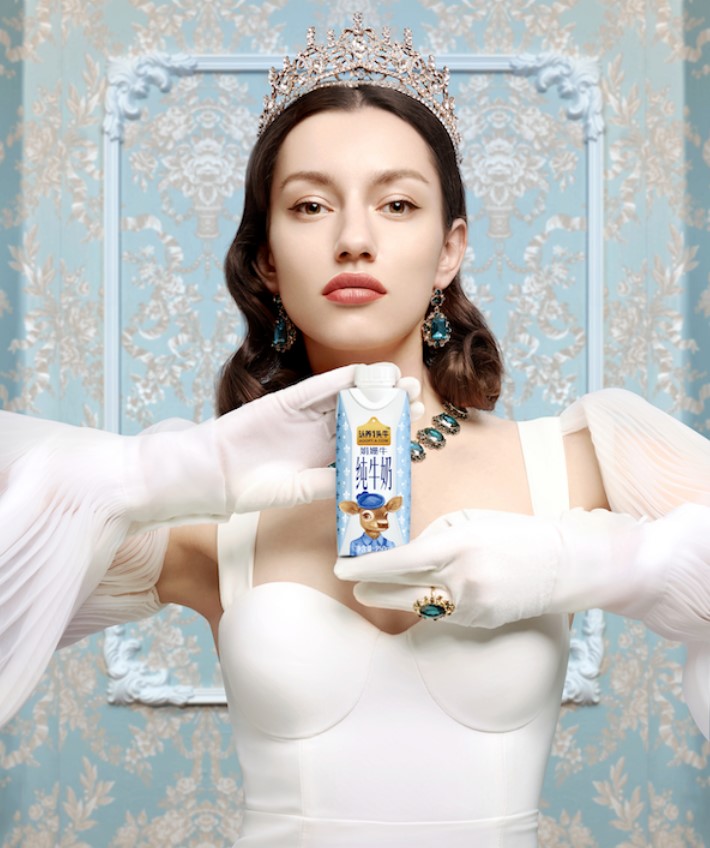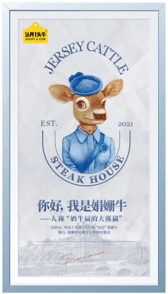 采用经典的“王室蓝”配色,搭配高级的烫银鸢尾花,同时特邀著名的工笔画家手绘了一副娟姗“女王牛”的肖像画,整体气质优雅恬静,毛发细节根根分明,惟妙惟肖。