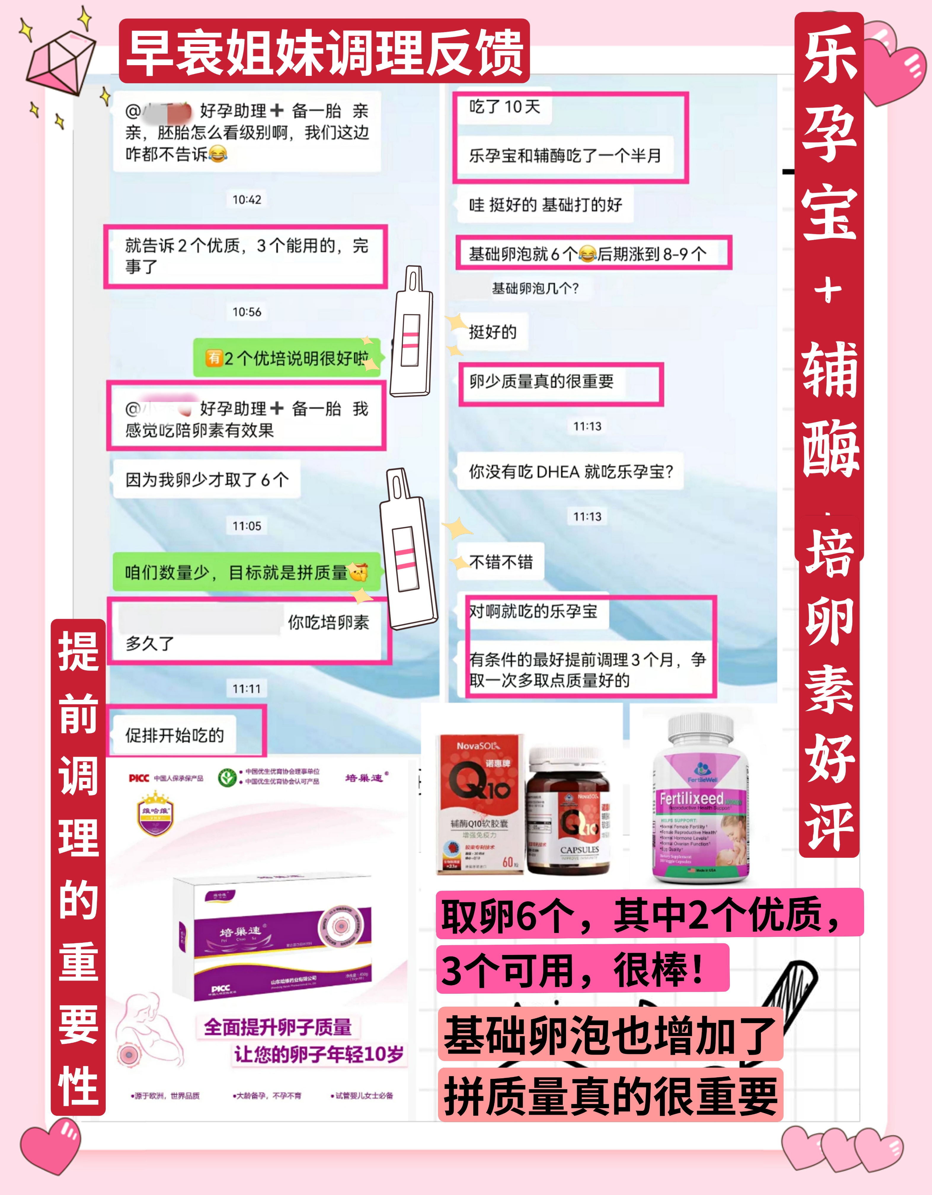 培卵素已在好孕帮多个群收到姐妹们的好评。试管姐妹促排前服用仅10天,取卵6枚,2个优质胚胎,3个可用胚胎,这个概率也是绝绝子了!!!
