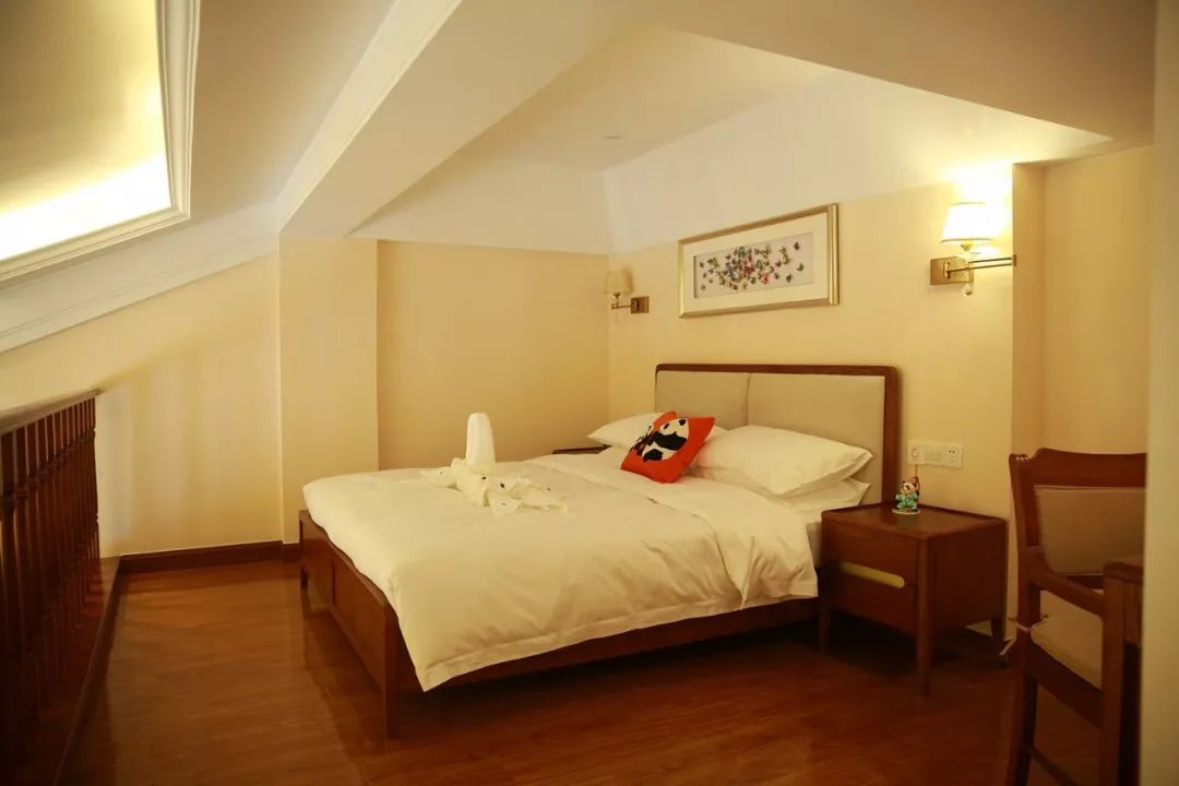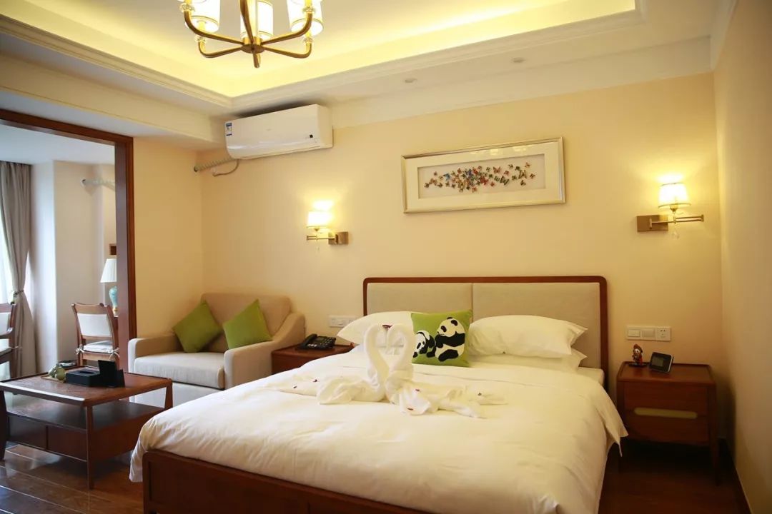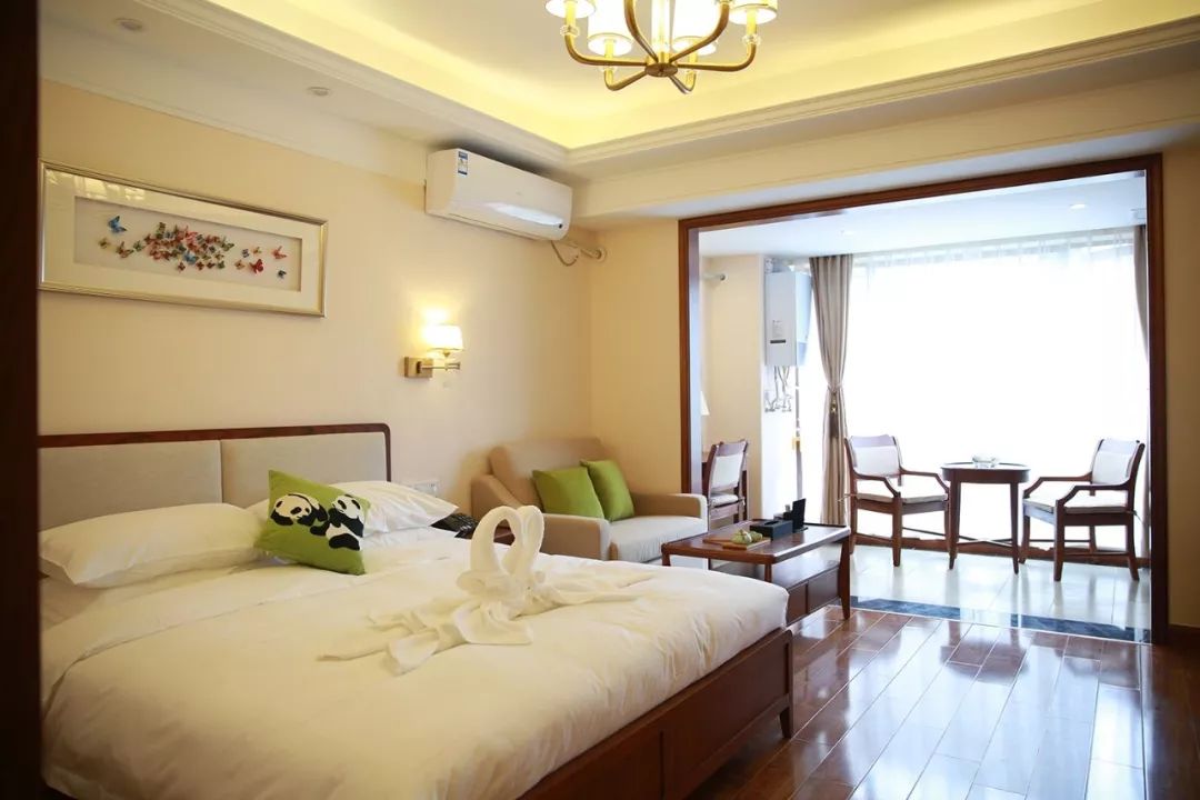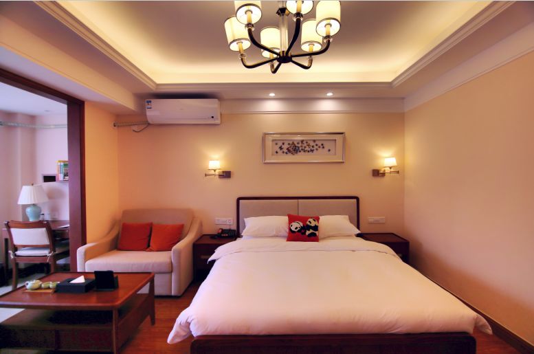标间更为宽敞,2张床也适合与好友相伴而行~酒店把房间布置的十分温馨舒适~床上的靠枕上还印着国宝熊猫的图案,简直萌萌哒!
