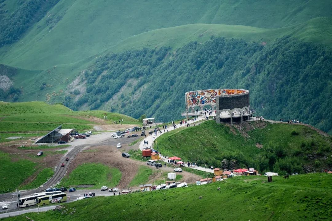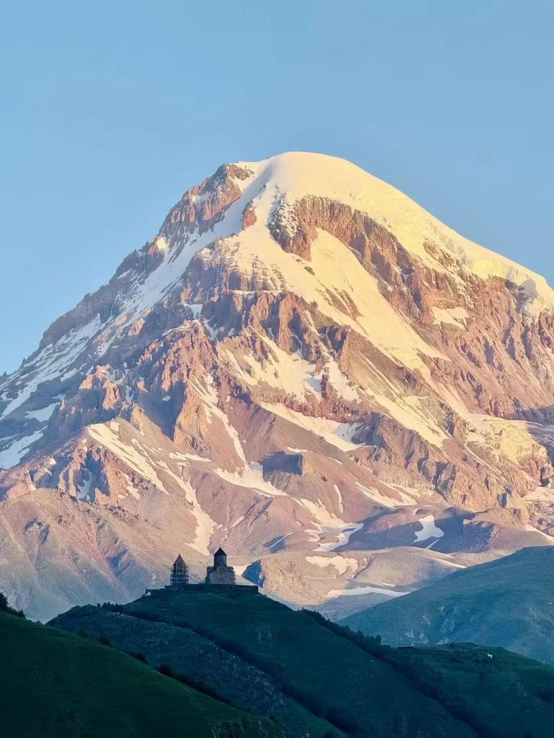 军事大道的最高点「格俄友谊纪念碑」已经成为非常繁忙的旅游打卡点,而另一处《孤独星球》封面同款的「卡兹别克圣三一教堂」则矗立在海拔2170米险峻山顶之上,这座建于十四世纪的古老教堂古朴庄严,在高大雪峰的映衬下,显得如此高处不胜寒,被誉为“世界上离天最近的教堂”。