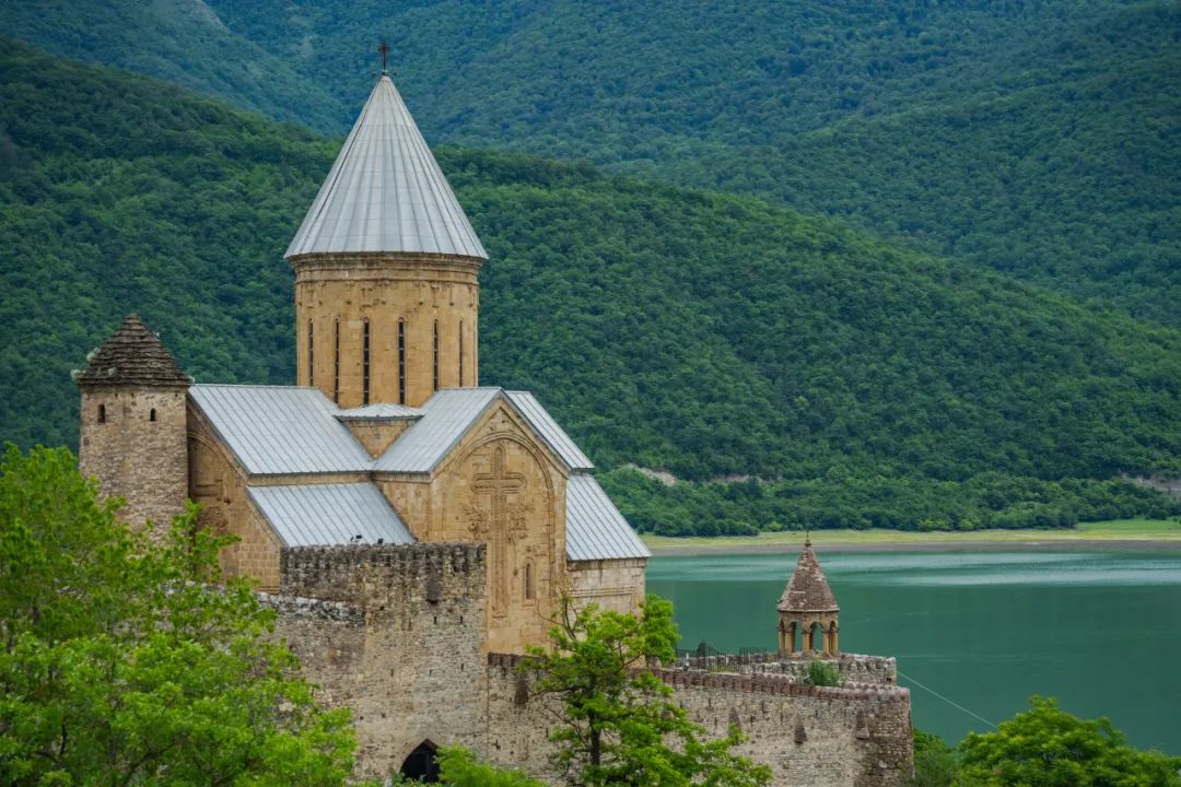 从首都第比利斯顺着蜿蜒的军事大道北上30多公里,便是1986年修建的津瓦利水库(Zhinvali)。随后来到位于阿拉格维(Aragvi)河谷的阿纳努里城堡,这座城堡也曾经是孤独星球的封面,城堡最早的部分可能要追溯到12至13世纪,作为一个军事要塞修建。后来城堡中的空地被两座教堂所占据,而今游人们喜欢从枪炮洞口中寻找教堂的尖顶。