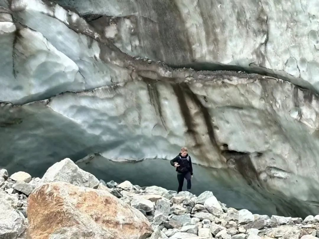 接着我们翻过高山,沿着河谷,跨过溪流,攀上石岗,抵达乌树故里什哈拉山(Shkhara)冰川脚下。