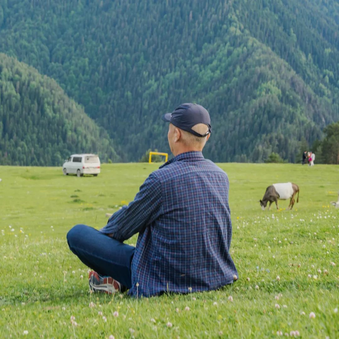 晚上我们入住在山下小镇,酒店阳台正对着卡兹别克山和教堂。到了早上,卡兹别克的日照金山如约而至,斯达潘斯明达的早晨就这样在金光熹微和牛的哞哞声中掀开了面纱。