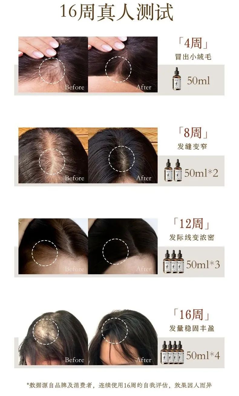 →坚持使用12-16周,发量翻倍,秀发乌黑,头皮健康,发根强韧
