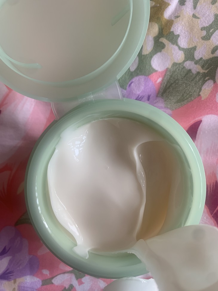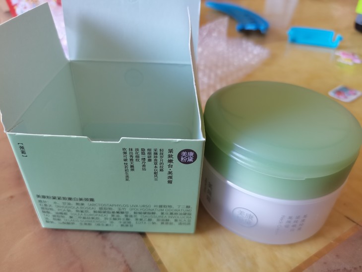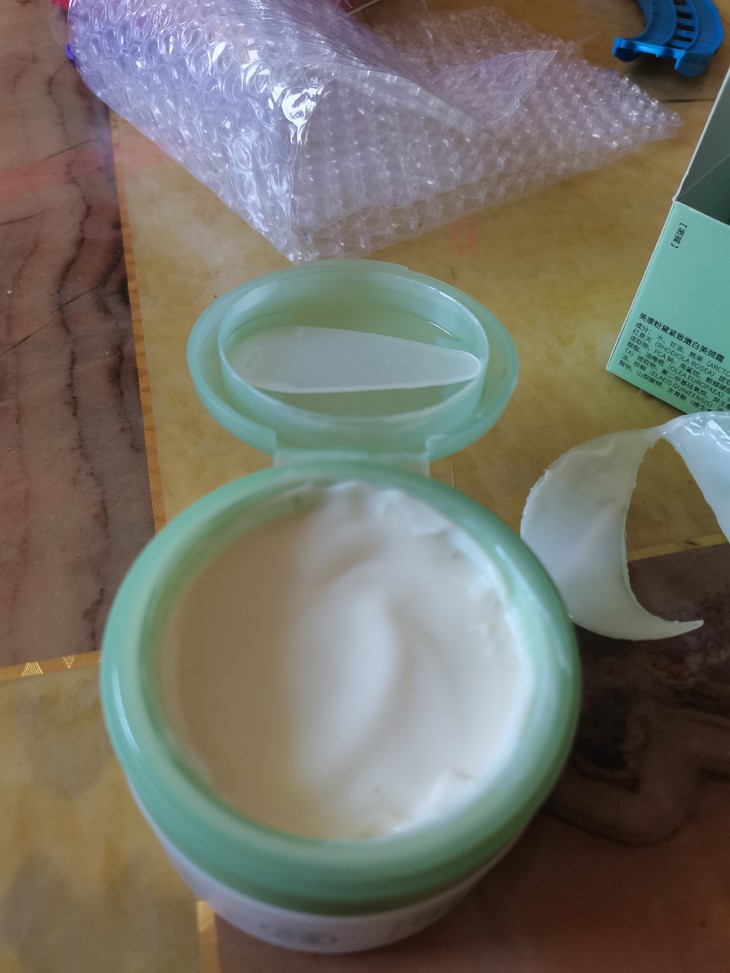 优点:1.质地比老款轻薄了,涂了不黏腻。2.是我比较喜欢的颜值,珠圆玉润的感觉,看着以及拿着都很舒服。3.使用效果因为时间短暂还未有明显效果,但我觉得他已经不局限于颈霜了,轻薄质地赋予他成为身体乳的选择,太适合夏天了! 缺点:1.气味不是我特别喜欢的,感觉有点怪怪的味道。2.质地太轻薄而盖子又直接翻盖没有任何遮挡,就很容易洒,不容易携带,另挖勺也很容易弄脏(如图二)还很容易掉到霜里面。但对于老款还要拧开盖子才能使用我又觉得太过繁琐,希望两者可以取一个中间值,更好地解决问题(个人不成熟的想法:可以加弄一个类似气垫里面的盖子之类的)。3.新款开封的方式我也很想吐槽,那个拉环设计感觉不太好,我就因为拉力把握不好在最后弄得我满手都是,还弄到了我的桌子上,很不好开封。 总结:整体来说,质量本身没有任何问题,还较老款有所改进,我个人会觉得包装设计还需要再改进一下,体验感会更好。以上就是我的体验报告,最后感谢美康给予的试用机会,谢谢,比心!