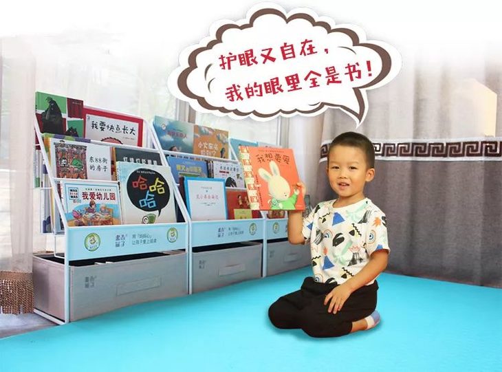 有漏出封面的展示区域,可以吸引孩子拿起就看。下面三层收纳区,可放看过的图书或玩具、卡片之类的~