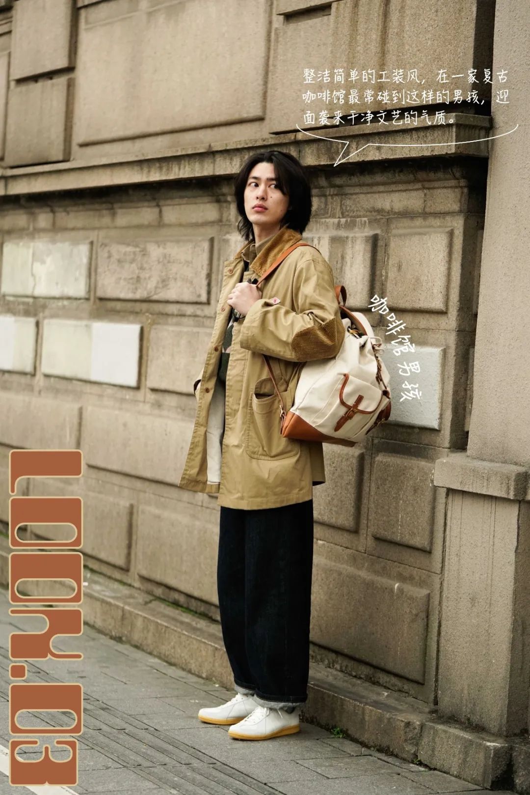 整洁简单的工装风,在一家复古咖啡馆最常碰到这样的男孩,迎面而来干净文艺的气质。