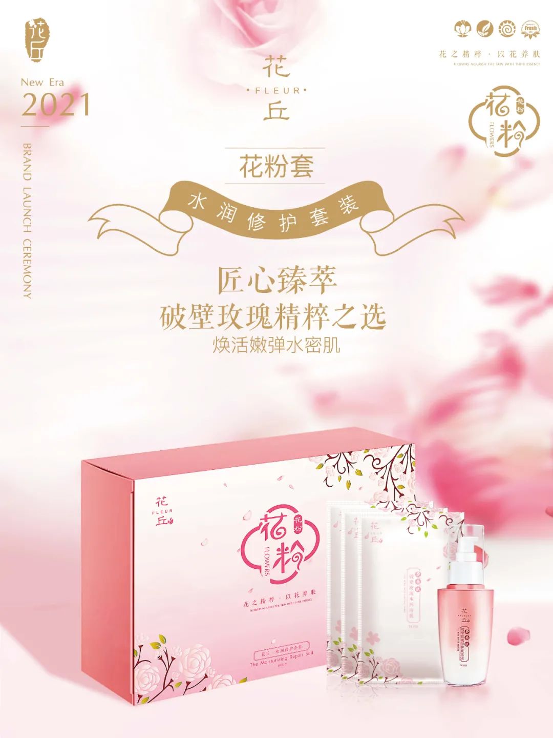 花丘·破壁玫瑰水润修护套装是专为沁活肌底,补水保湿、修复屏障设计。