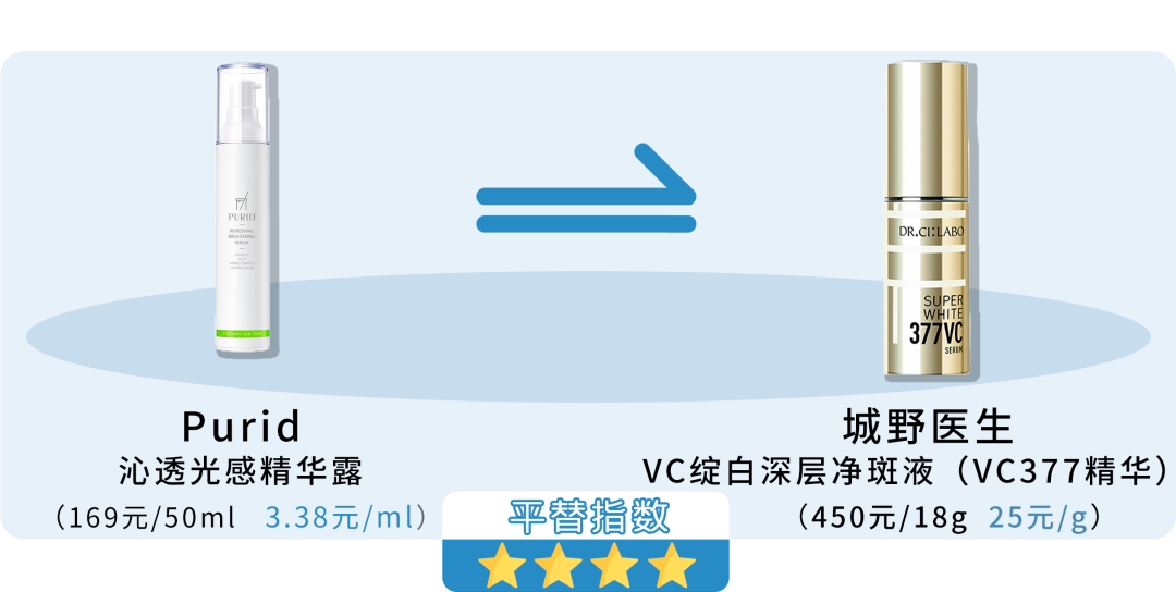 都是主打377(苯乙基间苯二酚)同时复配维C衍生物的美白精华。