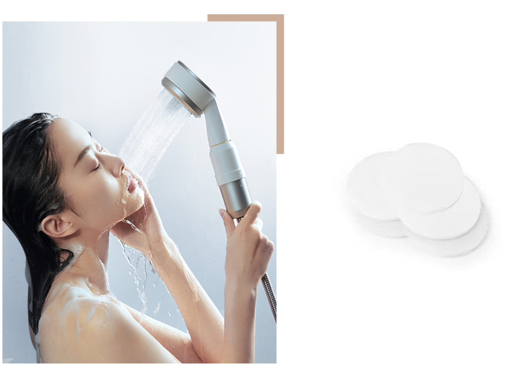 每一滴水接触到你的肌肤之前,都会经过花洒内部的四重过滤。分别是营养盒、 磁力葆、饮用水级的过滤球、Mirco pad 过滤棉片。