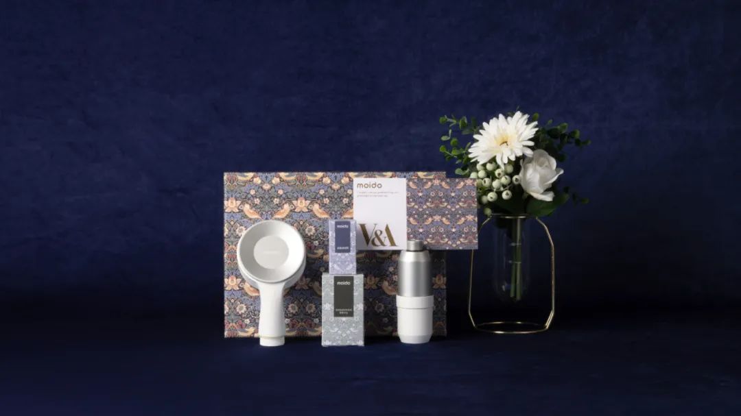 moido 的这款花洒现在还跟英国的 V&A 维多利亚与艾尔伯特博物馆 推出了「草莓小偷」联名款。