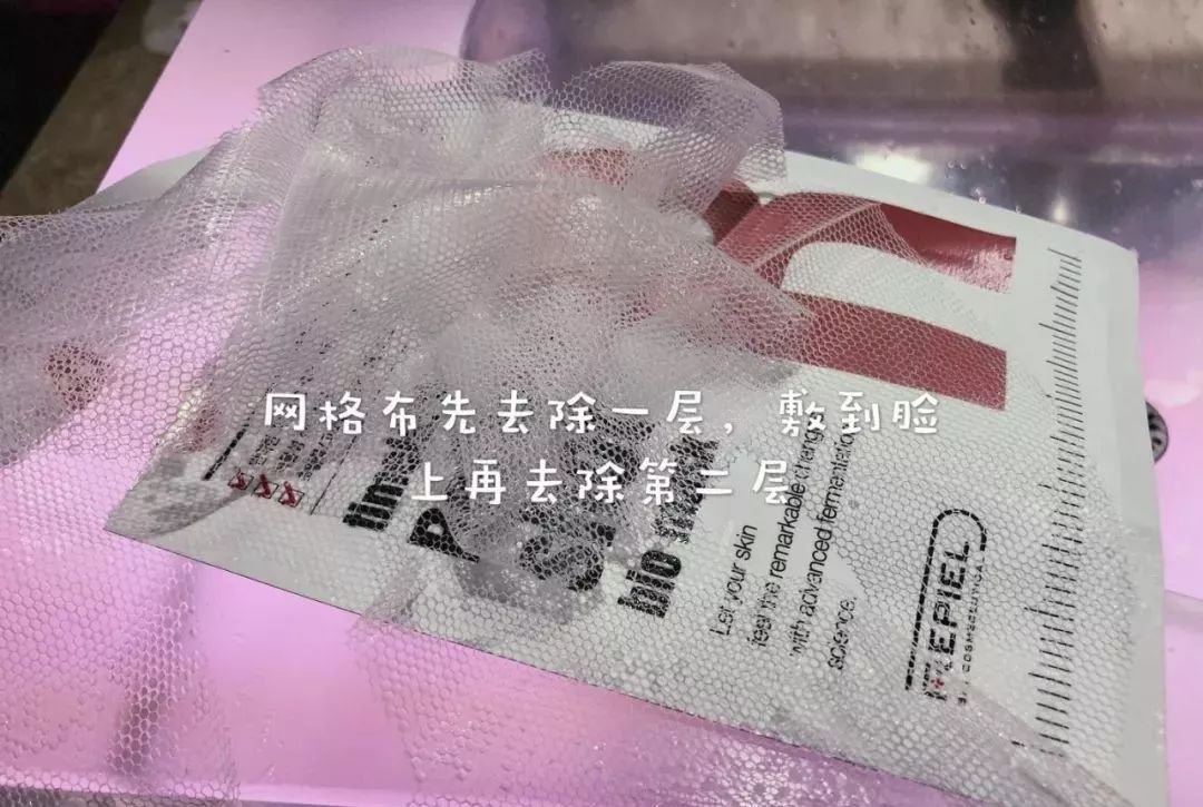 使用时一定要记得,把两面的网纱都揭掉哦,你就能好好享受这超薄面膜带来的护肤享受啦~