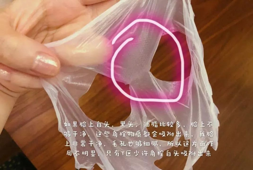 2. 深层去白头 油脂,敷30-60分钟,撕下来后放置在清水中,可以看到很多吸出来的油脂白头等